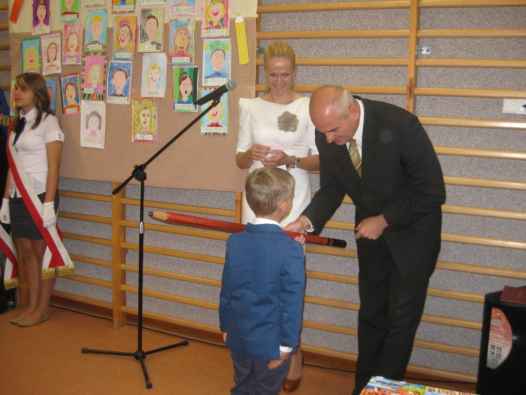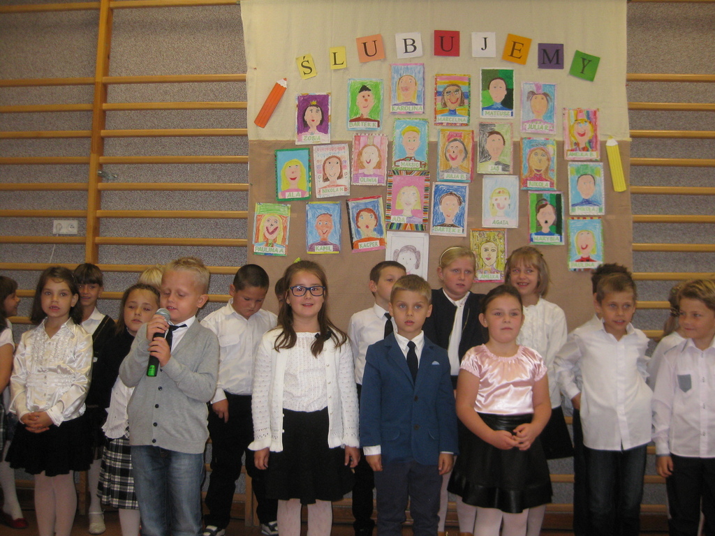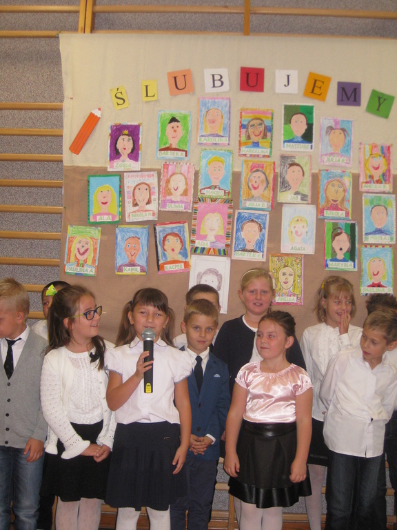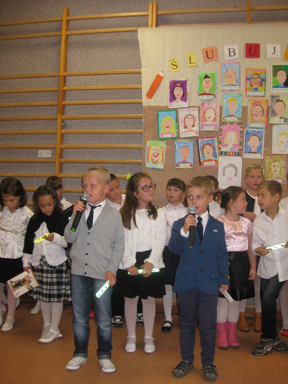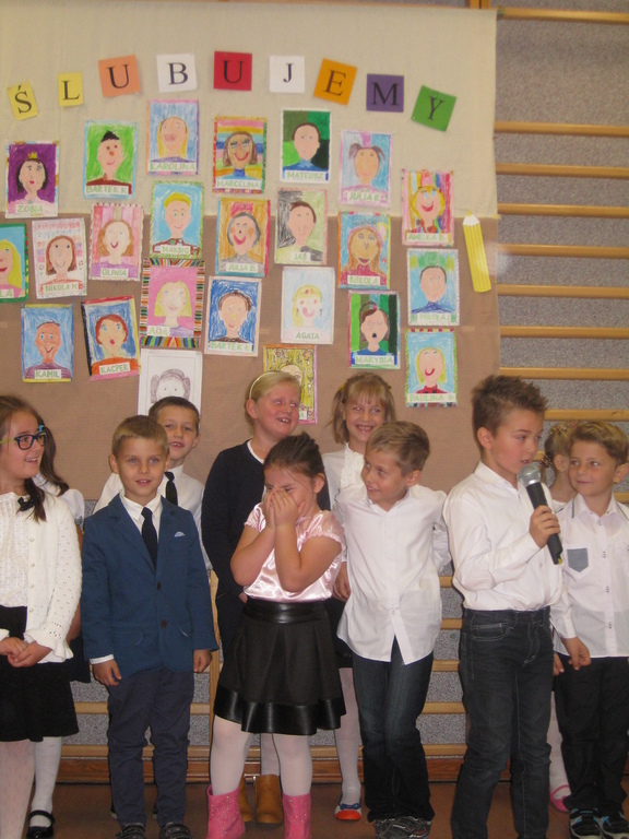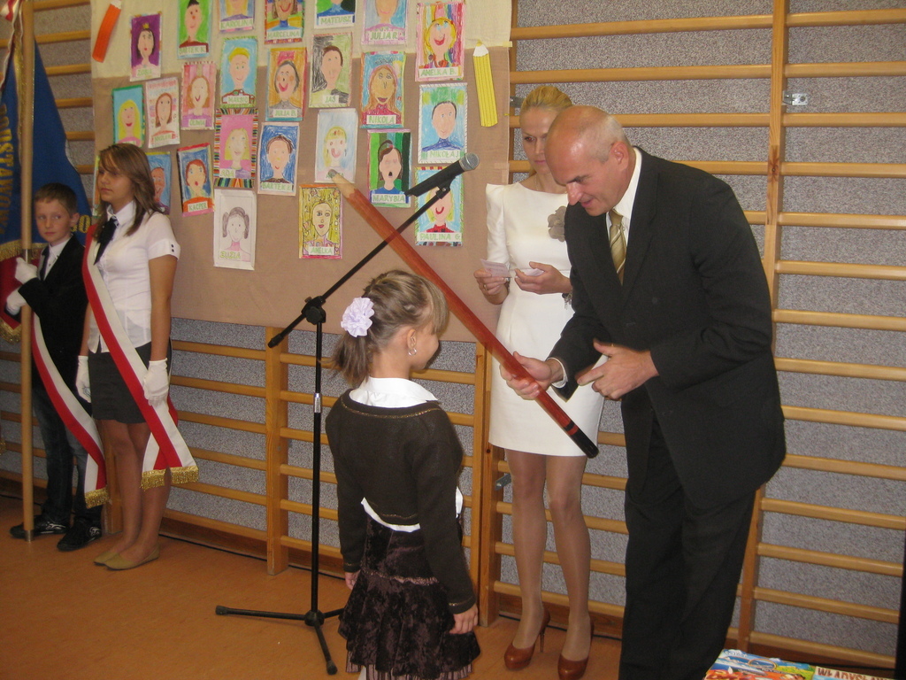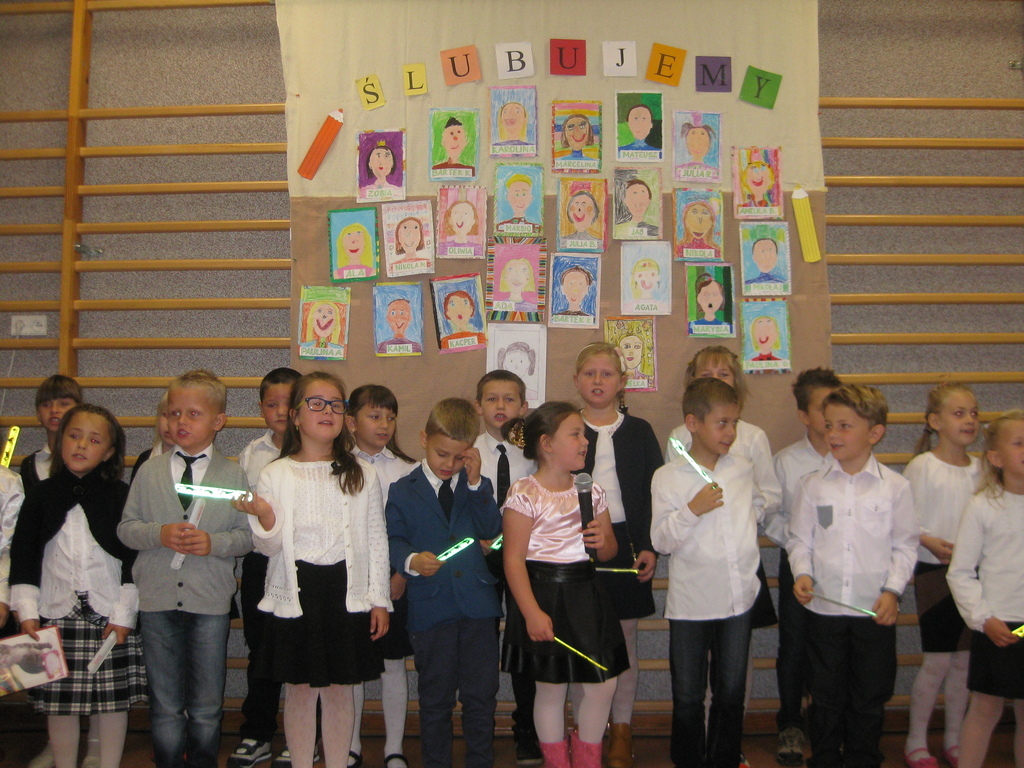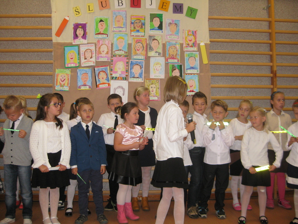 14 października w naszej szkole odbyła się uroczystość,,Pasowania na ucznia" dzieci z kl. I. Dyrektor Szkoły Paweł Dudziak dokonał ceremonii pasowania, dotykając ramię każdego ucznia ,,dużym ołówkiem". Nastepnie uczniowie kl.I. zaprezentowali swojeumiejetności w programie artystycznym, oklaskiwanym przez przybyłych na uroczystość rodziców i gości. Z tej okazji pierwszoklasiści otrzymali upominki od kolegów i koleżanek z kl. II-VI, Szkolnego Klubu Europejskiego i Rady Rodziców.Pan Dyrektor wręczył pierwszakom legitymacje szkolne,jako dowód przynależności do społeczności naszej szkoły.