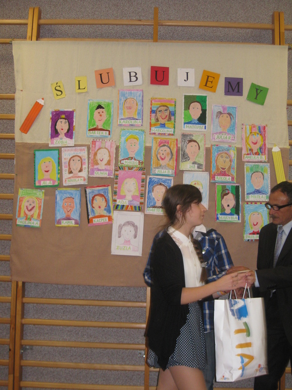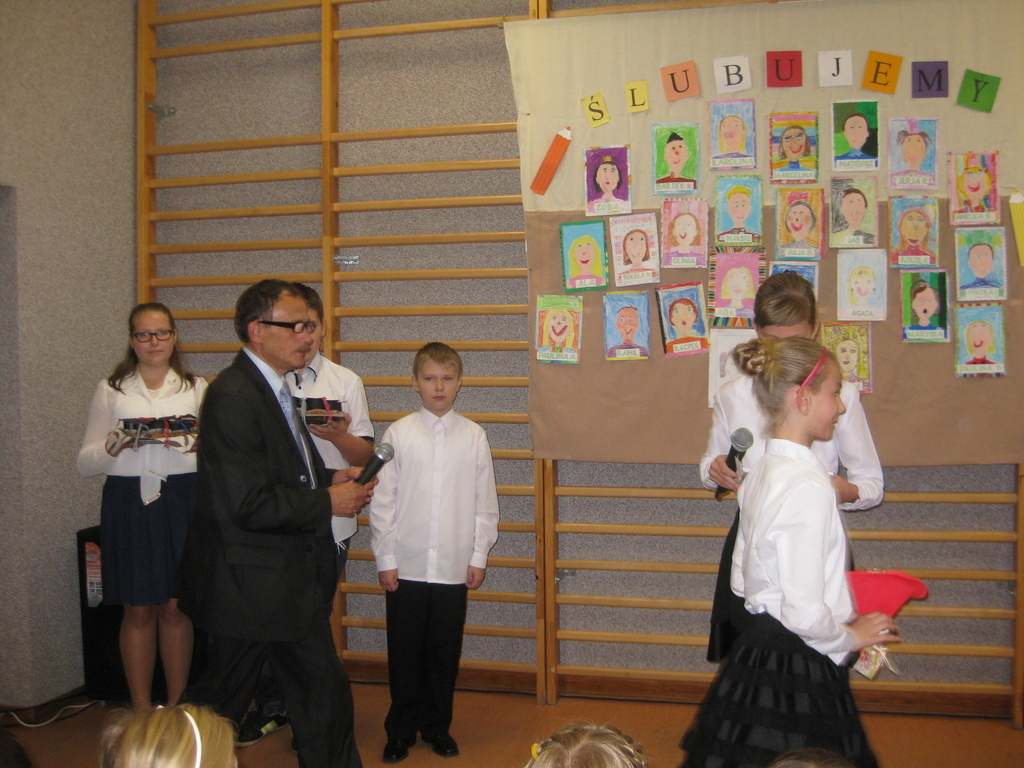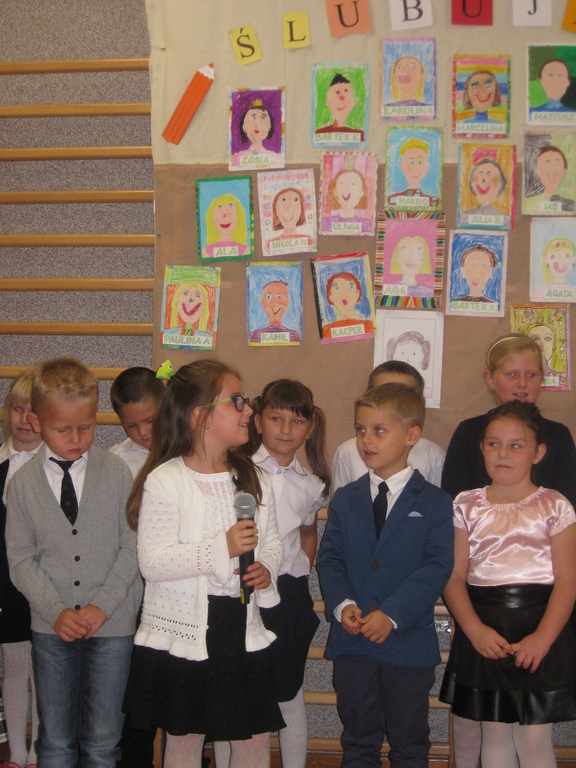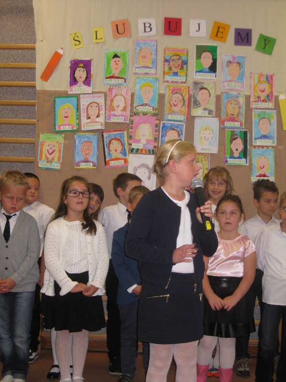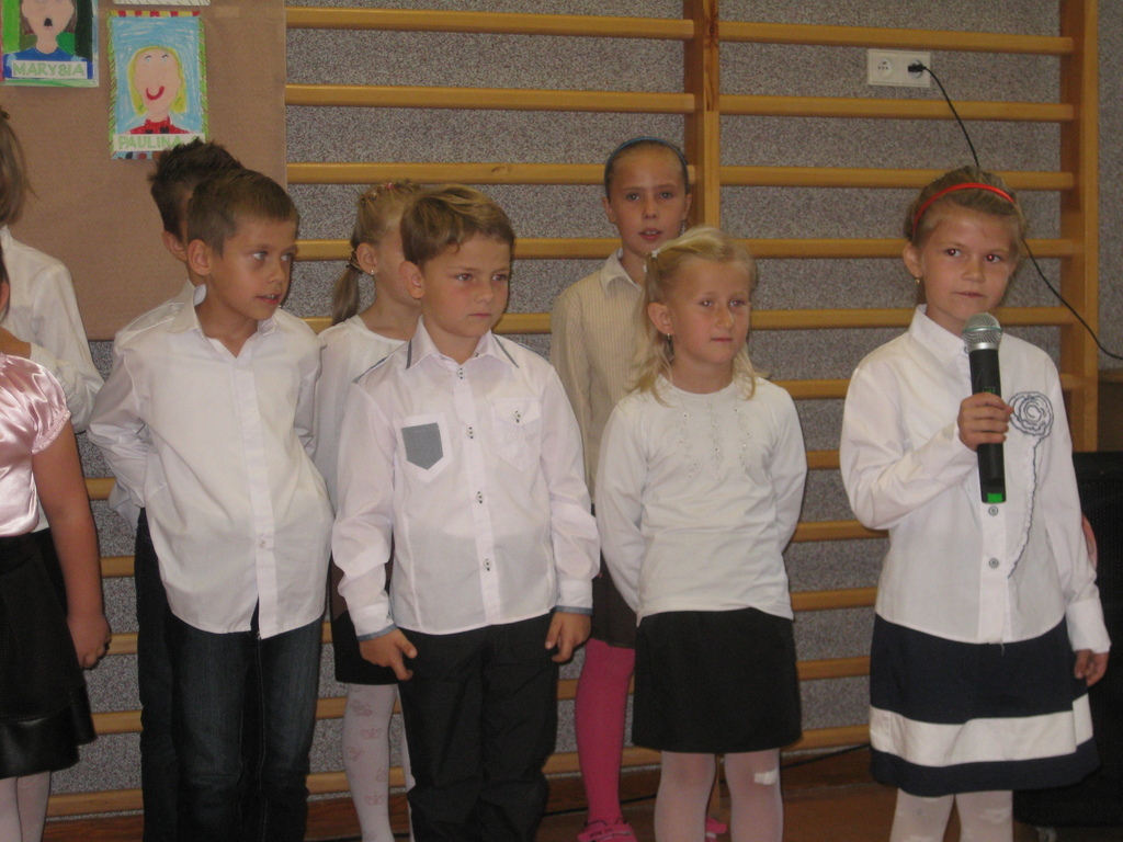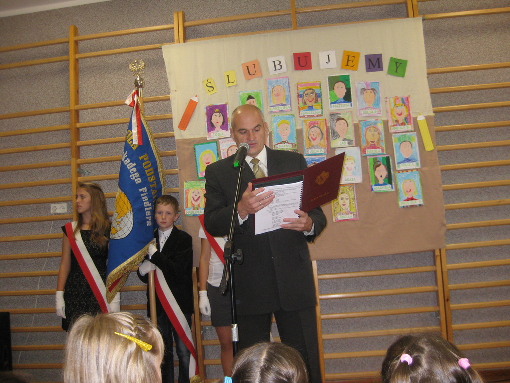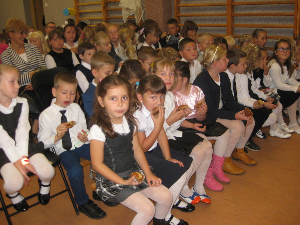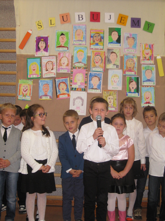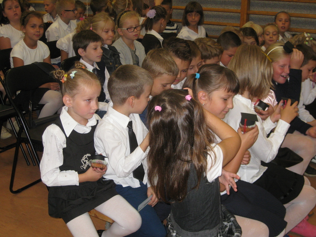 14 października w naszej szkole odbyła się uroczystość,,Pasowania na ucznia" dzieci z kl. I. Dyrektor Szkoły Paweł Dudziak dokonał ceremonii pasowania, dotykając ramię każdego ucznia ,,dużym ołówkiem". Nastepnie uczniowie kl.I. zaprezentowali swojeumiejetności w programie artystycznym, oklaskiwanym przez przybyłych na uroczystość rodziców i gości. Z tej okazji pierwszoklasiści otrzymali upominki od kolegów i koleżanek z kl. II-VI, Szkolnego Klubu Europejskiego i Rady Rodziców.Pan Dyrektor wręczył pierwszakom legitymacje szkolne,jako dowód przynależności do społeczności naszej szkoły.