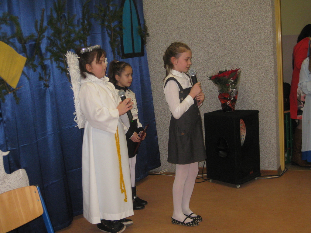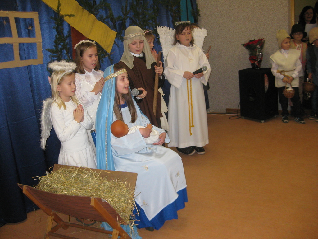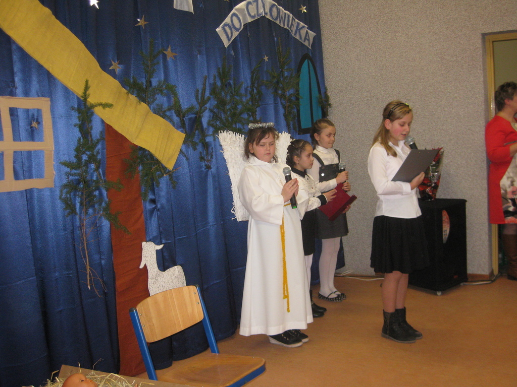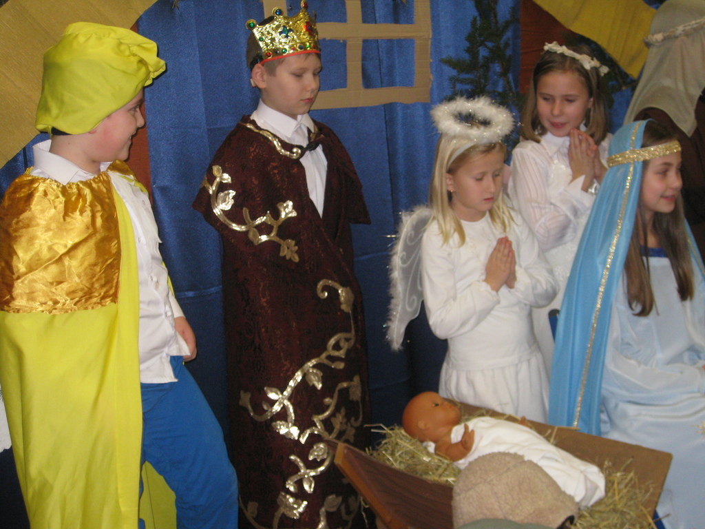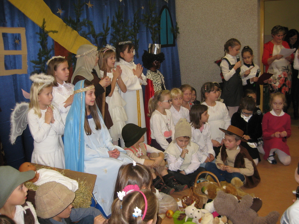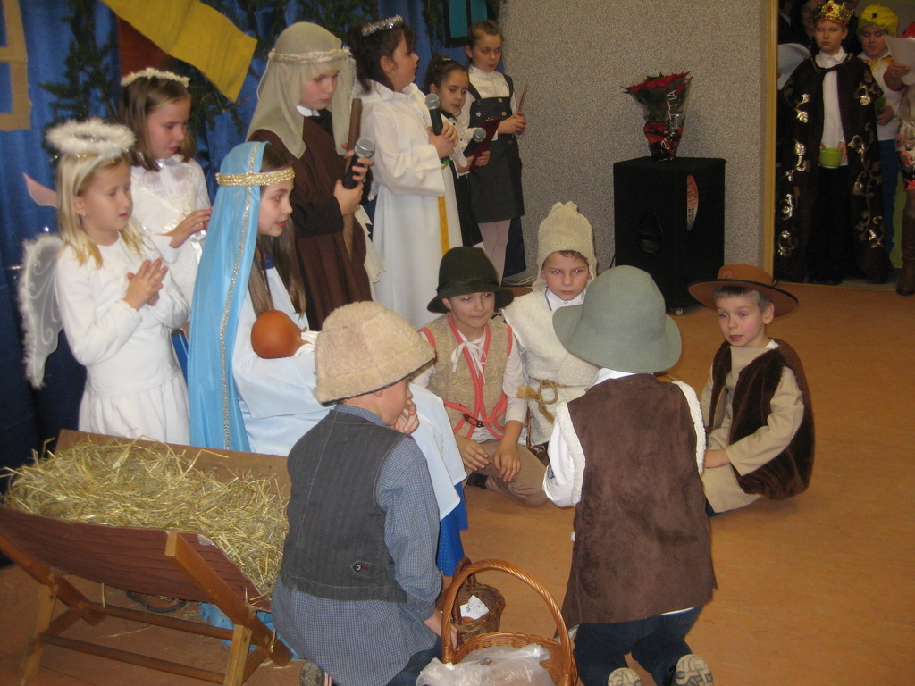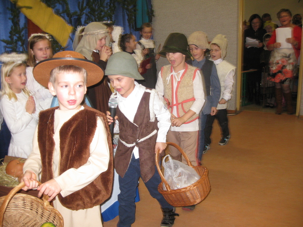 Swięta Bożego Narodzenia to wyjątkowy okres w roku, na który czekają nie tylko dzieci, ale i dorośli. Tradycyjnie ,,Spotkanie opłatkowe" dla społeczności okolicznych wsi, miało miejsce w naszej szkole 17 grudnia 2014roku.W spotkaniu wzięli udział zaproszeni goście -księża z Parafii Bojanowo,nowy burmistrz p.Maciej Dubiel,radni,soltysi wsi Golina Wielka,Gierłachowo,Kawcze i Wydartowo. .Nie zabrakło rodziców i mieszkańców. Dyrektor szkoły,Paweł Dudziak powitał wszystkich przybyłych na to spotkanie i zaprosił na część artystyczną. Jasełka w wykonaniu klas I-III wprowadziły nas w świąteczny nastrój.Gra małych aktorów była pełna szczerości,prostoty i ciepła .Wywarła duże wrażenie i poruszenie wśród zgromadzonej publiczności .Uczniowie klas IV_VI śpiewali kolędy i pastoralki, grali na fletach piosenki o tematyce świątecznej.Po części artystycznej wszyscy łamali się opłatkiem,skadali sobie życzenia i częstowali się pysznym ciastem, upieczonym przez nasze kochane mamy.