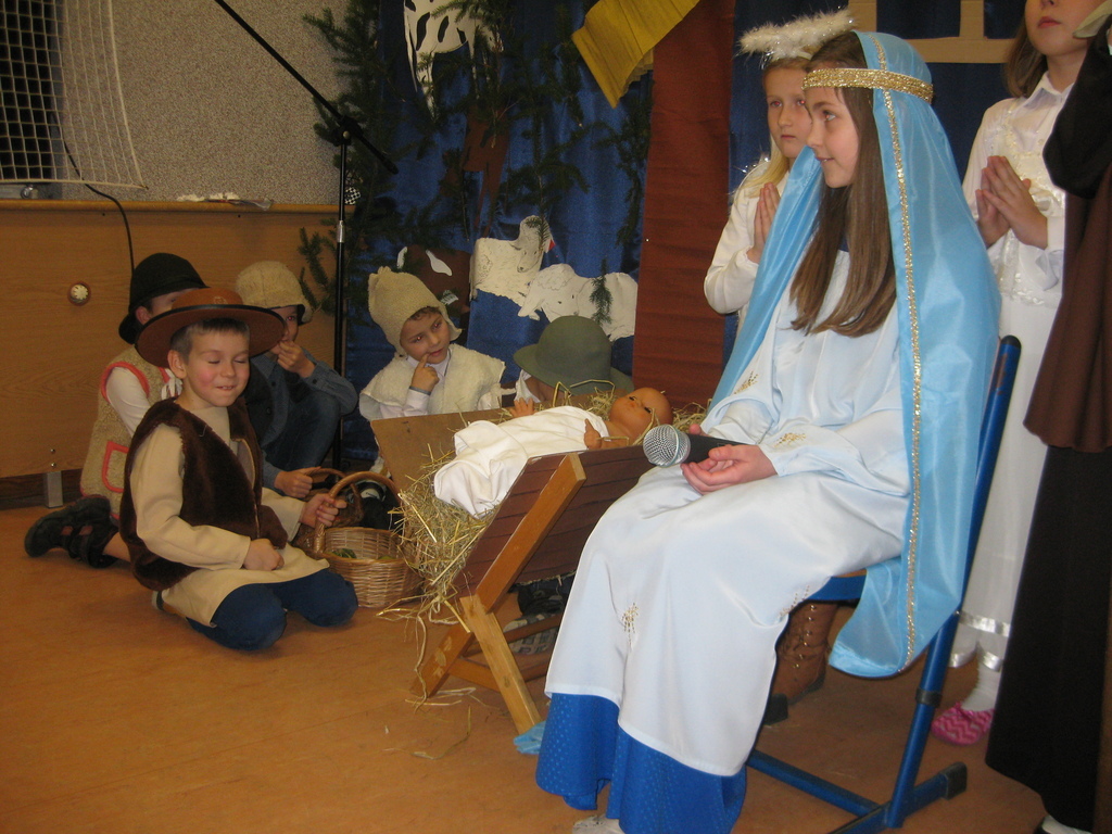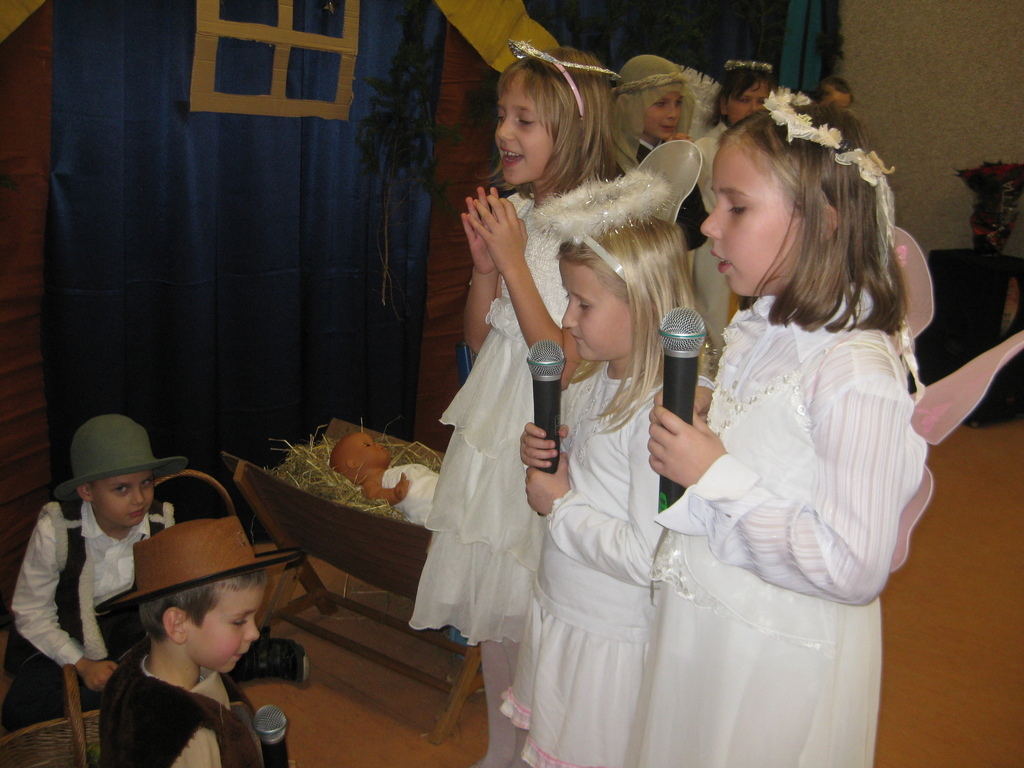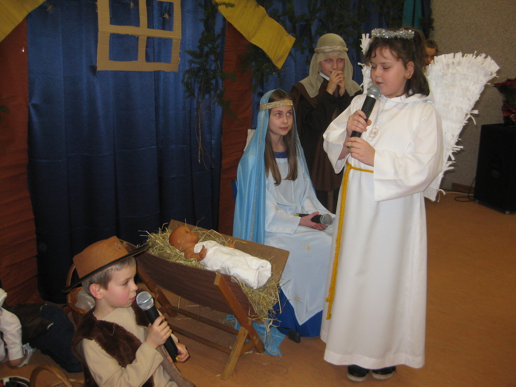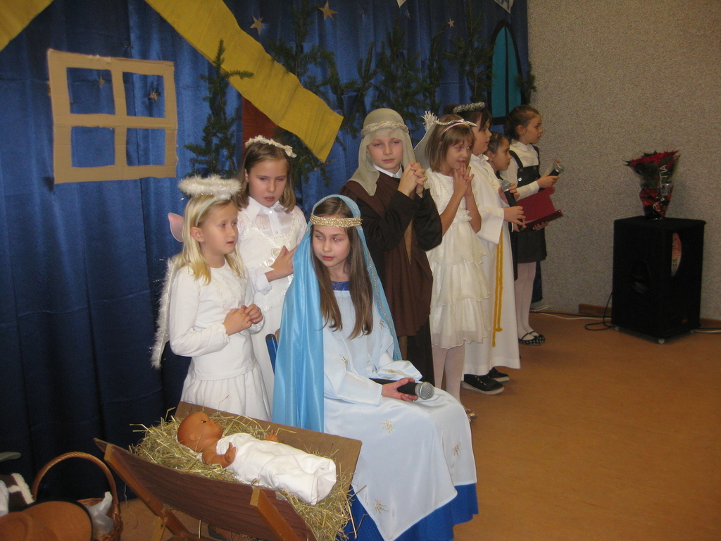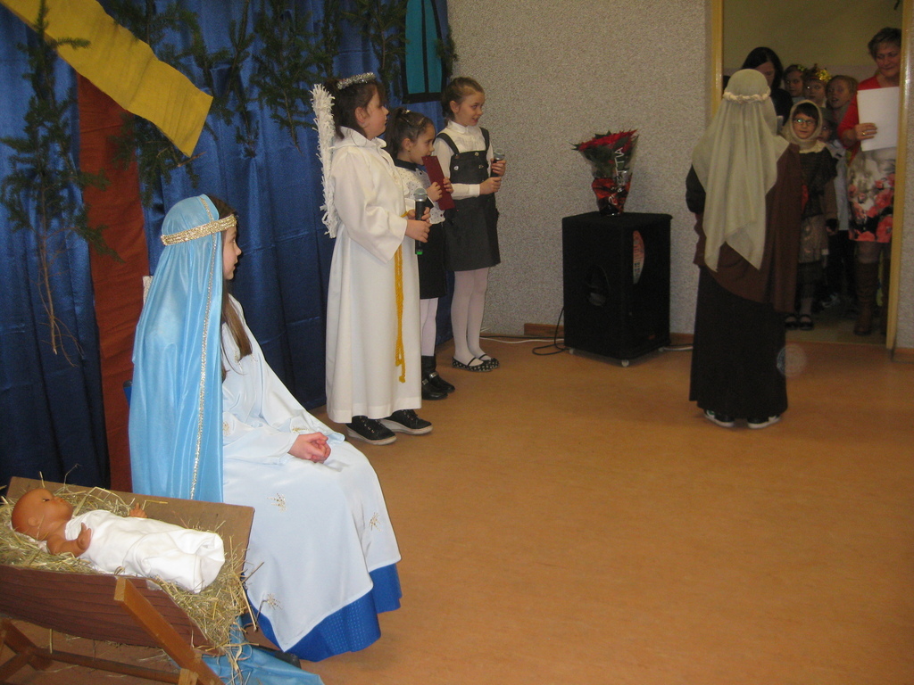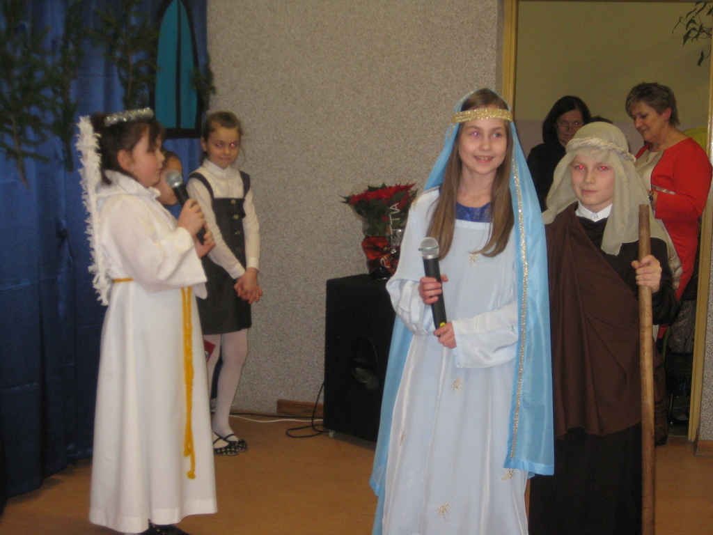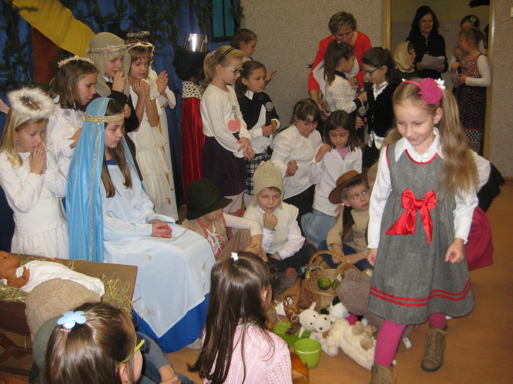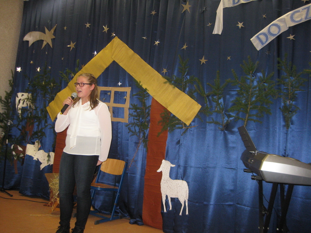 Swięta Bożego Narodzenia to wyjątkowy okres w roku, na który czekają nie tylko dzieci, ale i dorośli. Tradycyjnie ,,Spotkanie opłatkowe" dla społeczności okolicznych wsi, miało miejsce w naszej szkole 17 grudnia 2014roku.W spotkaniu wzięli udział zaproszeni goście -księża z Parafii Bojanowo,nowy burmistrz p.Maciej Dubiel,radni,soltysi wsi Golina Wielka,Gierłachowo,Kawcze i Wydartowo. .Nie zabrakło rodziców i mieszkańców. Dyrektor szkoły,Paweł Dudziak powitał wszystkich przybyłych na to spotkanie i zaprosił na część artystyczną. Jasełka w wykonaniu klas I-III wprowadziły nas w świąteczny nastrój.Gra małych aktorów była pełna szczerości,prostoty i ciepła .Wywarła duże wrażenie i poruszenie wśród zgromadzonej publiczności .Uczniowie klas IV_VI śpiewali kolędy i pastoralki, grali na fletach piosenki o tematyce świątecznej.Po części artystycznej wszyscy łamali się opłatkiem,skadali sobie życzenia i częstowali się pysznym ciastem, upieczonym przez nasze kochane mamy.