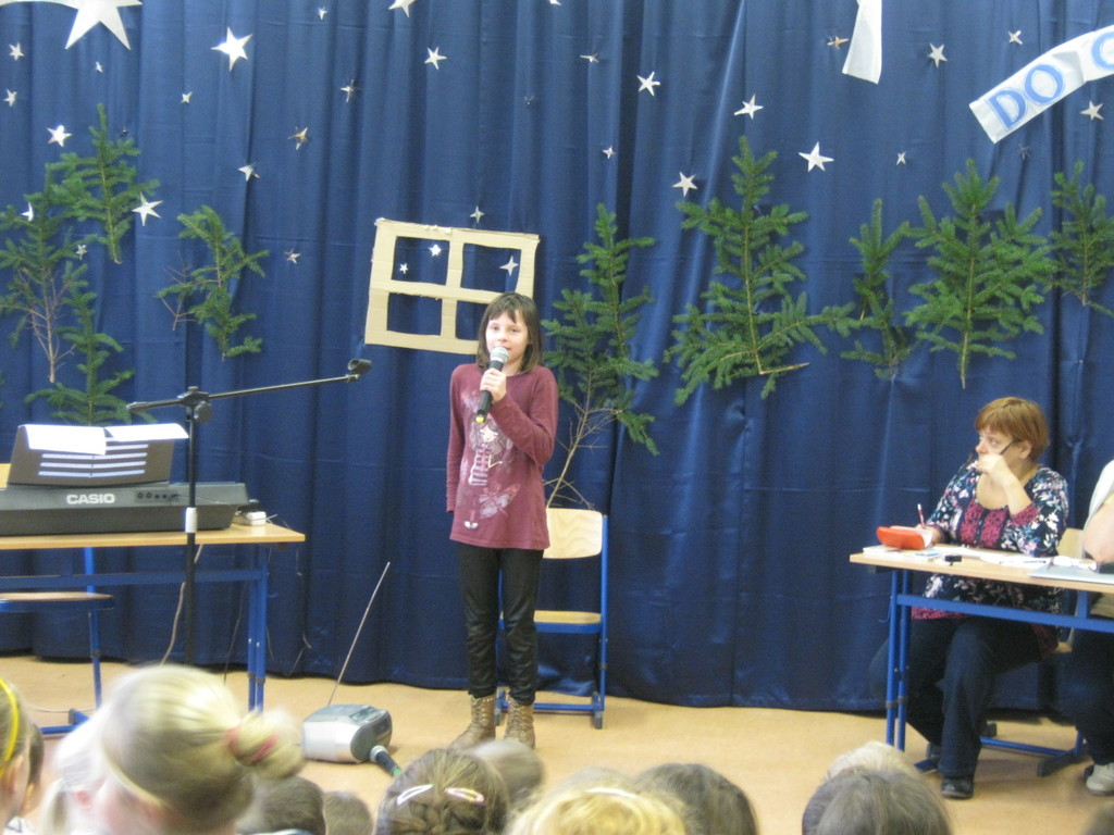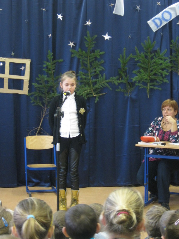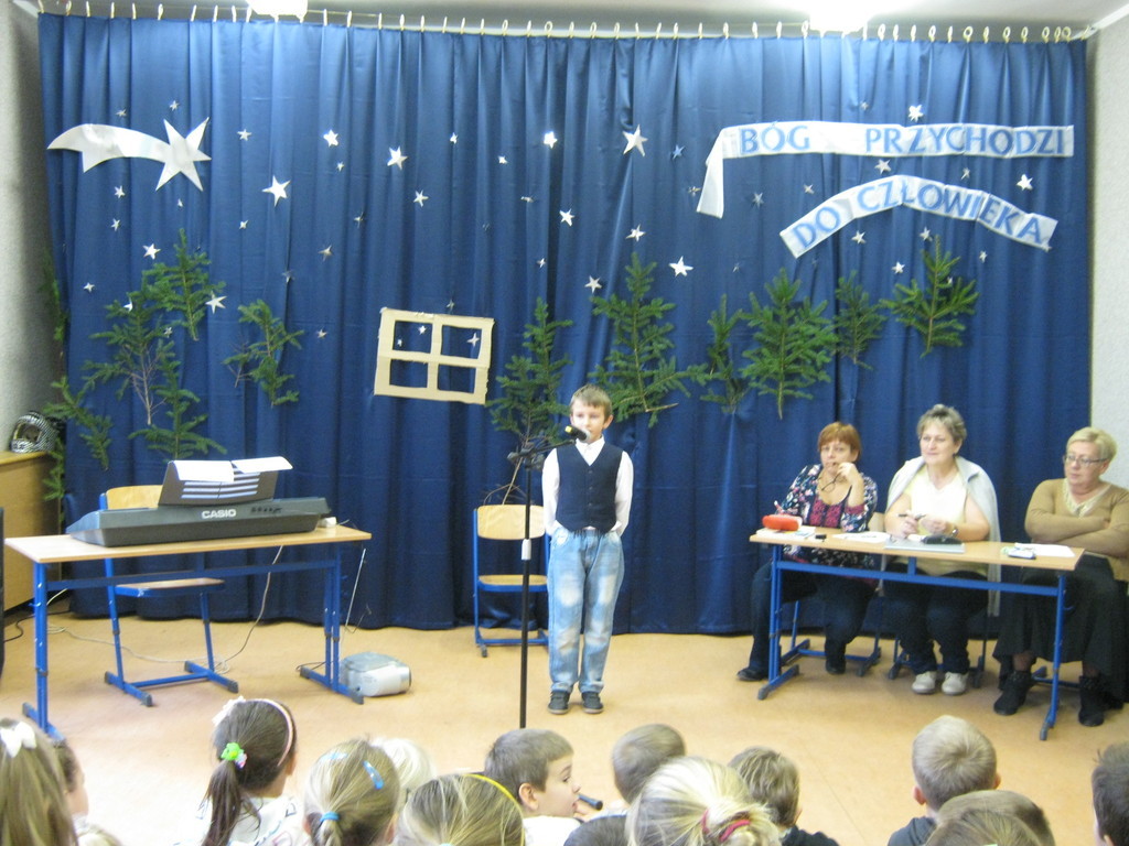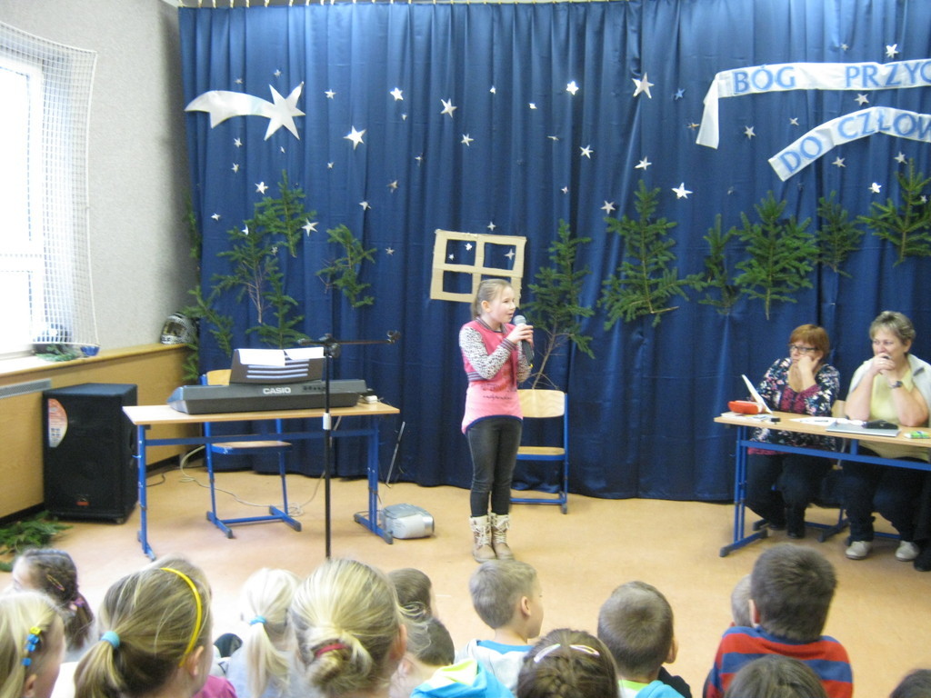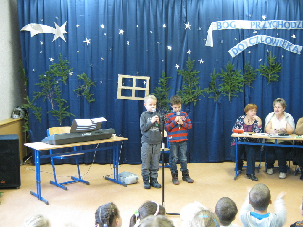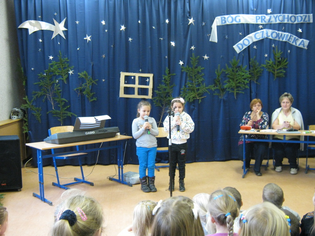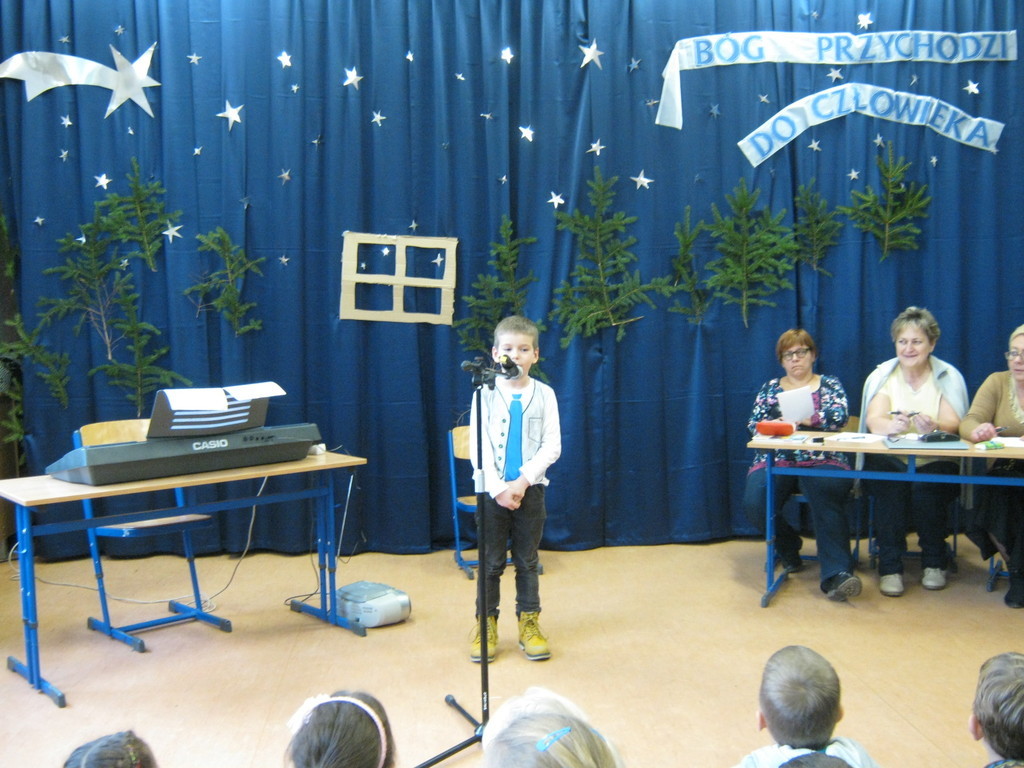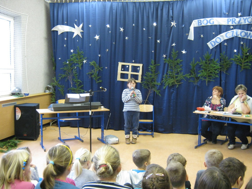 Tradycyjne,wszystkim znane kolędy i pastorałki zaprezentowali na konkursie 16 grudnia, uczniowie klas I-VI .Głównym celem konkursu było kultywowanie pięknęj, polskiej tradycji śpiewania kolęd i pastorałek,rozwijanie zamiłowania do śpiewu,prezentacja talentów muzycznych i wokalnych.Występy oceniała komisja w składzie: M.Skotarek,J.Rychlicka,W.Szymanowska.Podczas oceny jury szczególną uwagę zwróciło na znajomość tekstu,poczucie rytmu,muzykalność i ogóny wyraz artystyczny. Jury miało nie lada problem wyłonić zwycięzców.