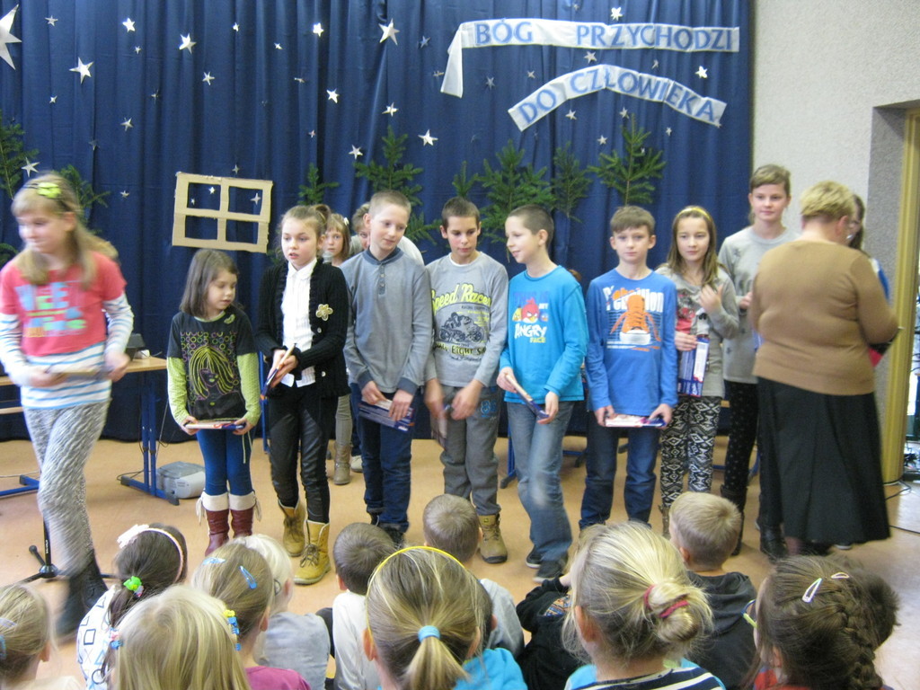 Zwycięzcy otrzymali upominki,dyplomy i możliwość występu na ,,Spotkaniu opłatkowym"dla mieszkańców okolicznych wsi.Pozostali uczestnicy otrzymali dyplomy i gromkie brawa.