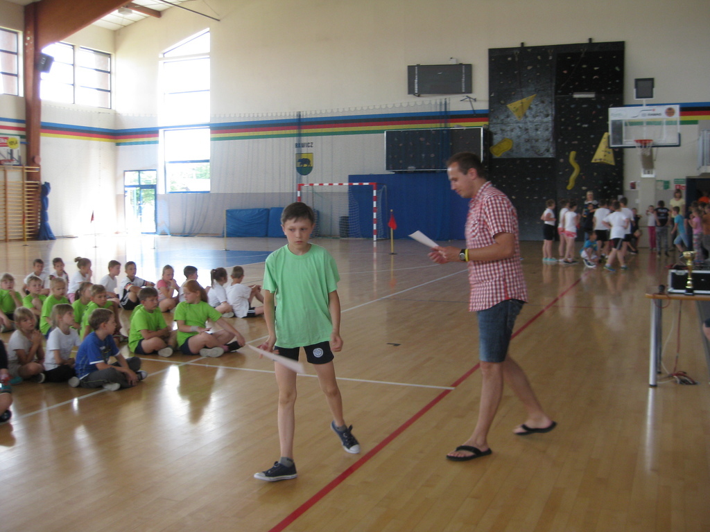 Na Powiatowych Zawodach Sportowych kl.I-III nie bylo łatwo. Wszyscy zawodnicy byli doskonale przygotowani, wykazali sie wysoką sprawnością fizyczną. Mimo tego najmłodsi z naszej szkoły walczyli od samego poczatku do końca, dali z siebie wszystko. Najlepiej wypadli pierwszoklasiści, zajmując III miejsce. Pozostali uczniowie niestety nie zmieścili się na podium. Wszyscy zawodnicy, jak zwykle, cieszyli się z udziału w tych zawodach.