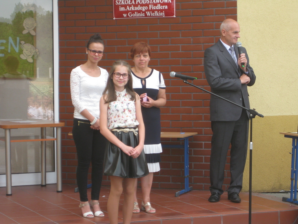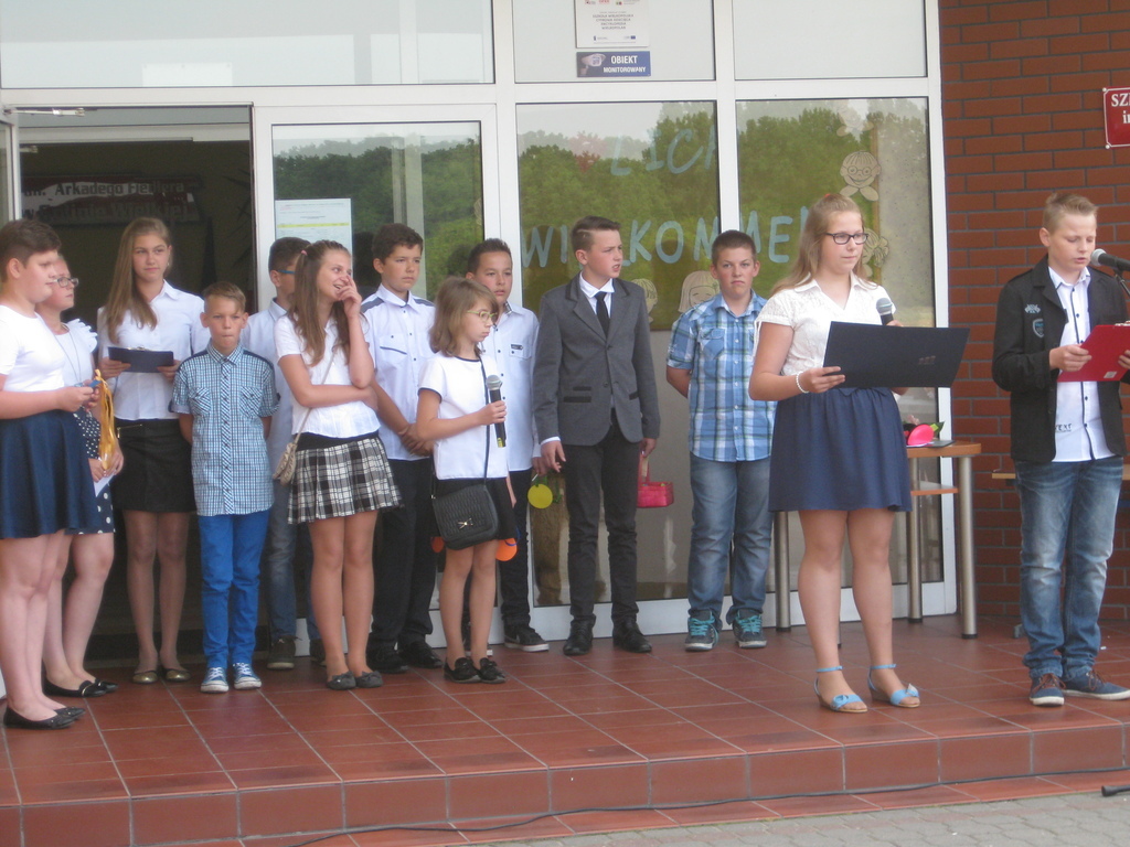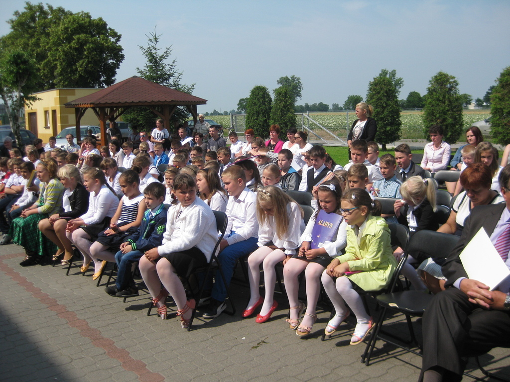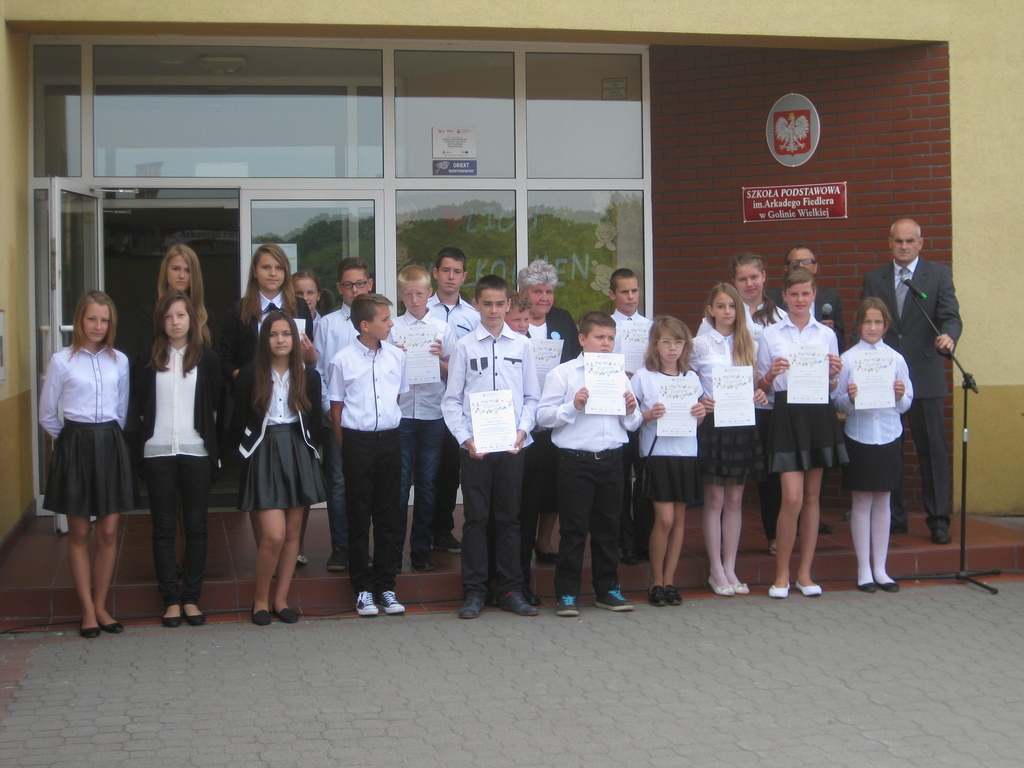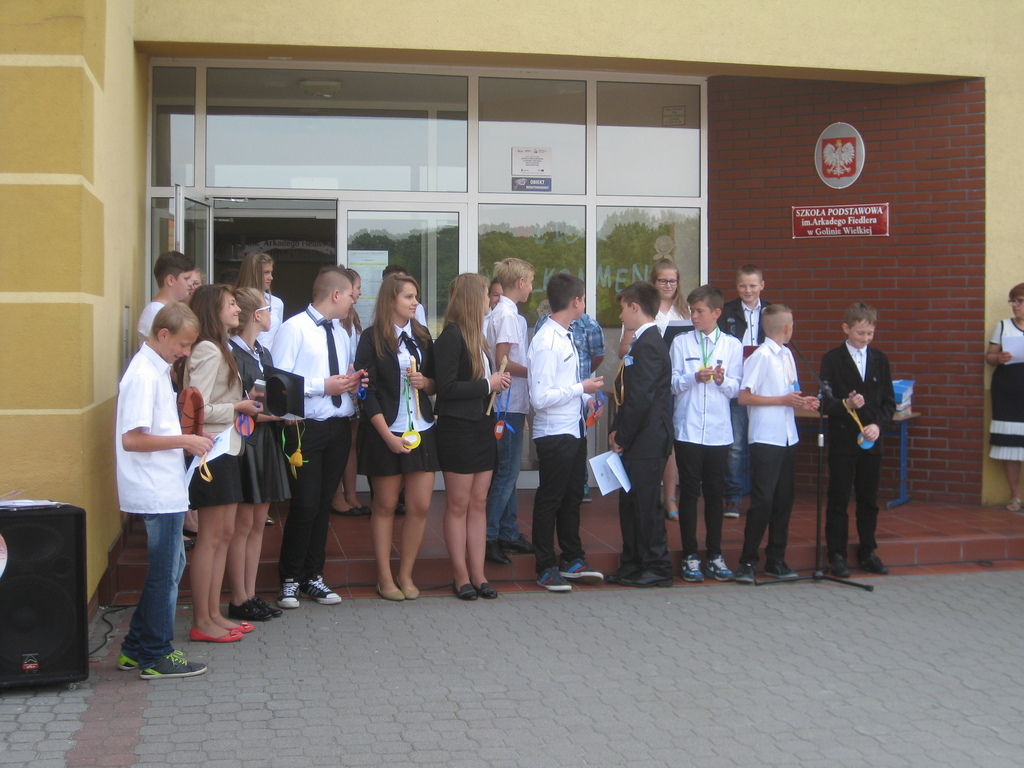 Na ten dzień czekali z utęsknieniem uczniowie - koniec nauki - wakacje! Uroczyste zakończenie roku szkolnego odbyło się 26.06.2015 roku. Po wprowadzeniu sztandaru i odśpiewaniu hymnu narodowego przez społeczność szkoły Pan dyrektor Paweł Dudziak zabrał głos. Przywitał zaproszonych gości, rodziców, pracowników szkoły oraz uczniów. Podziękował wszystkim za całoroczną pracę. Przewodniczący Rady Miejskiej Pan Jarosław Bartkowiak, wręczył ufundowaną przez siebie nagrodę - Urszuli Gil, uczennicy kl. IV za bardzo dobre wyniki w nauce i najwyższą średnią ocen w szkole - 5,62. Następnie Pan dyrektor Paweł Dudziak w imieniu wszystkich pracowników szkoły i uczniów podziękowal panu Władysławowi Domanieckiemu, za dotychczasową, sumienną pracę ,,woźnego". Po raz ostatni zabrzmiał dzwonek naszej szkoły dla nauczycielki, Pani Wandy Szymanowskiej, która postanowiła przejśc na zasłużoną emeryturę.