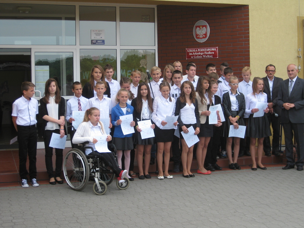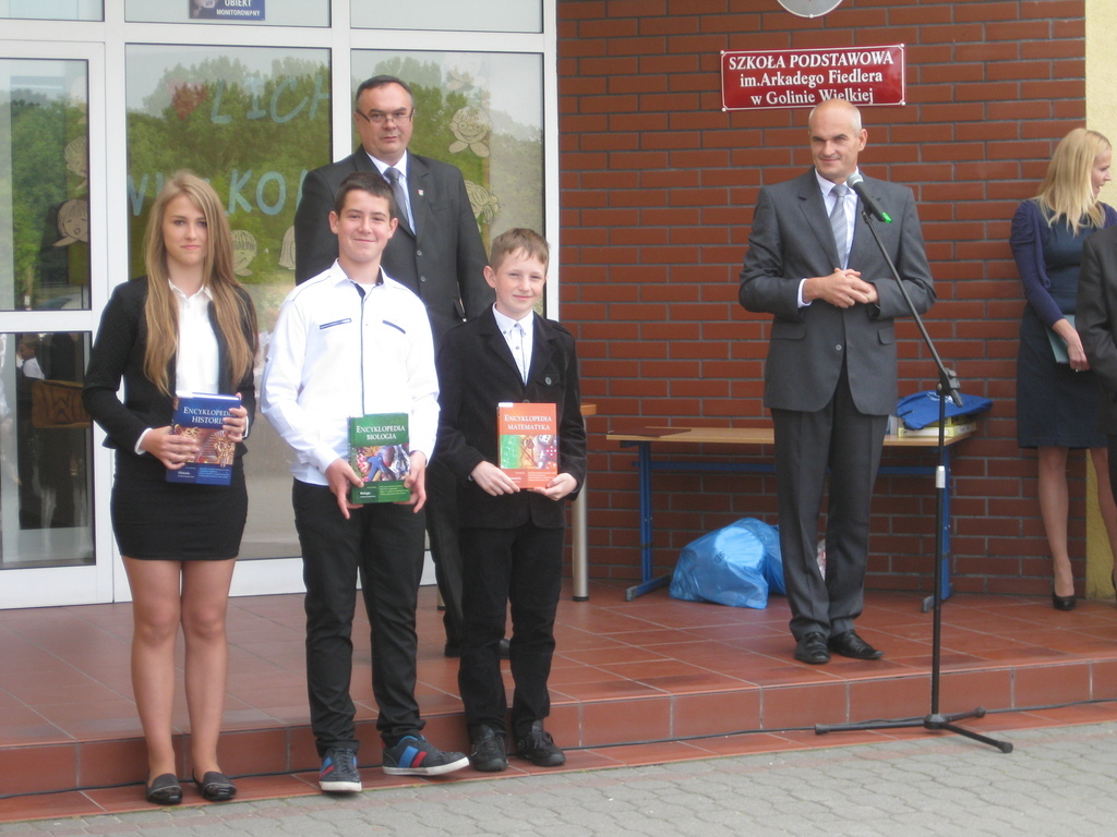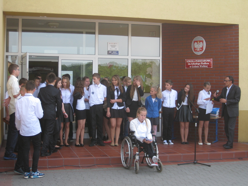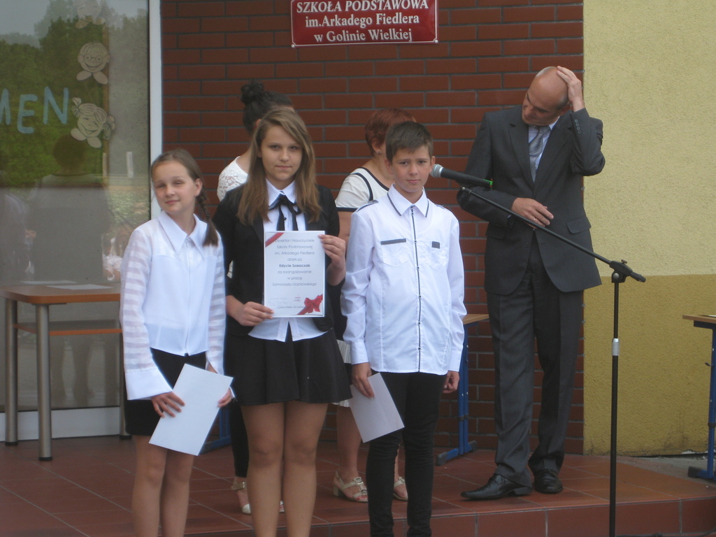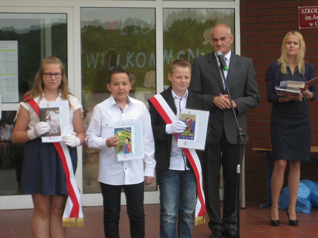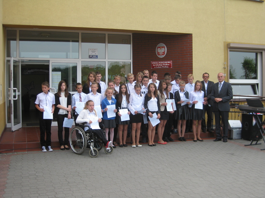 Na ten dzień czekali z utęsknieniem uczniowie - koniec nauki - wakacje! Uroczyste zakończenie roku szkolnego odbyło się 26.06.2015 roku. Po wprowadzeniu sztandaru i odśpiewaniu hymnu narodowego przez społeczność szkoły Pan dyrektor Paweł Dudziak zabrał głos. Przywitał zaproszonych gości, rodziców, pracowników szkoły oraz uczniów. Podziękował wszystkim za całoroczną pracę. Przewodniczący Rady Miejskiej Pan Jarosław Bartkowiak, wręczył ufundowaną przez siebie nagrodę - Urszuli Gil, uczennicy kl. IV za bardzo dobre wyniki w nauce i najwyższą średnią ocen w szkole - 5,62. Następnie Pan dyrektor Paweł Dudziak w imieniu wszystkich pracowników szkoły i uczniów podziękowal panu Władysławowi Domanieckiemu, za dotychczasową, sumienną pracę ,,woźnego". Po raz ostatni zabrzmiał dzwonek naszej szkoły dla nauczycielki, Pani Wandy Szymanowskiej, która postanowiła przejśc na zasłużoną emeryturę.