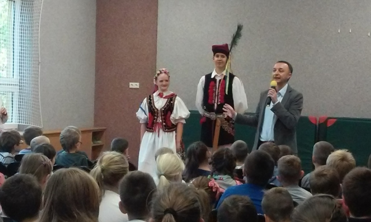 Para tancerzy, która odwiedziła naszą szkołę, zaprezentowała pięć tańców, które zostały zakwalifikowane jako narodowe tańce polskie, a są to: krakowiak, mazur, kujawiak, oberek i polonez. Powszechnie przyjmuje się, że polskie tańce narodowe wywodzą się z kultury ludowej, ale w trakcie swego rozwoju historycznego tak się zmieniły, ze obecnie niewiele maja wspólnego ze swymi pierwowzorami wiejskimi.