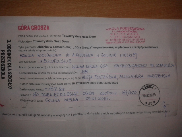 Zebrana kwota wyniosła ostatecznie 198,84 zł, z czego jesteśmy bardzo dumni!
