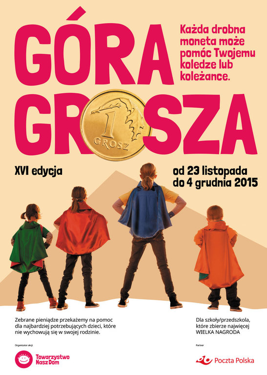 Cel Góry Grosza pozostaje od lat niezmienny – pomoc dzieciom, które z różnych przyczyn nie mogą wychowywać się we własnym domu rodzinnym. Każdy z nas przyniósł tyle, ile mógł. Przez dwa tygodnie tropiliśmy w naszych domach drobne monety, szukaliśmy wsparcia u rodziców, dziadków i innych krewnych.