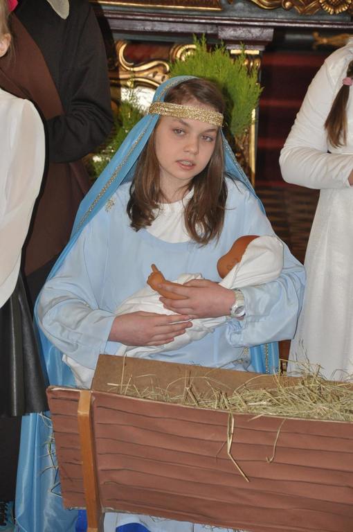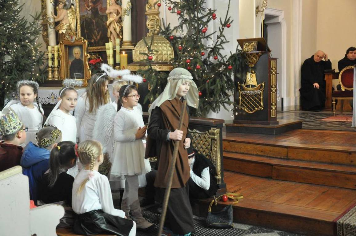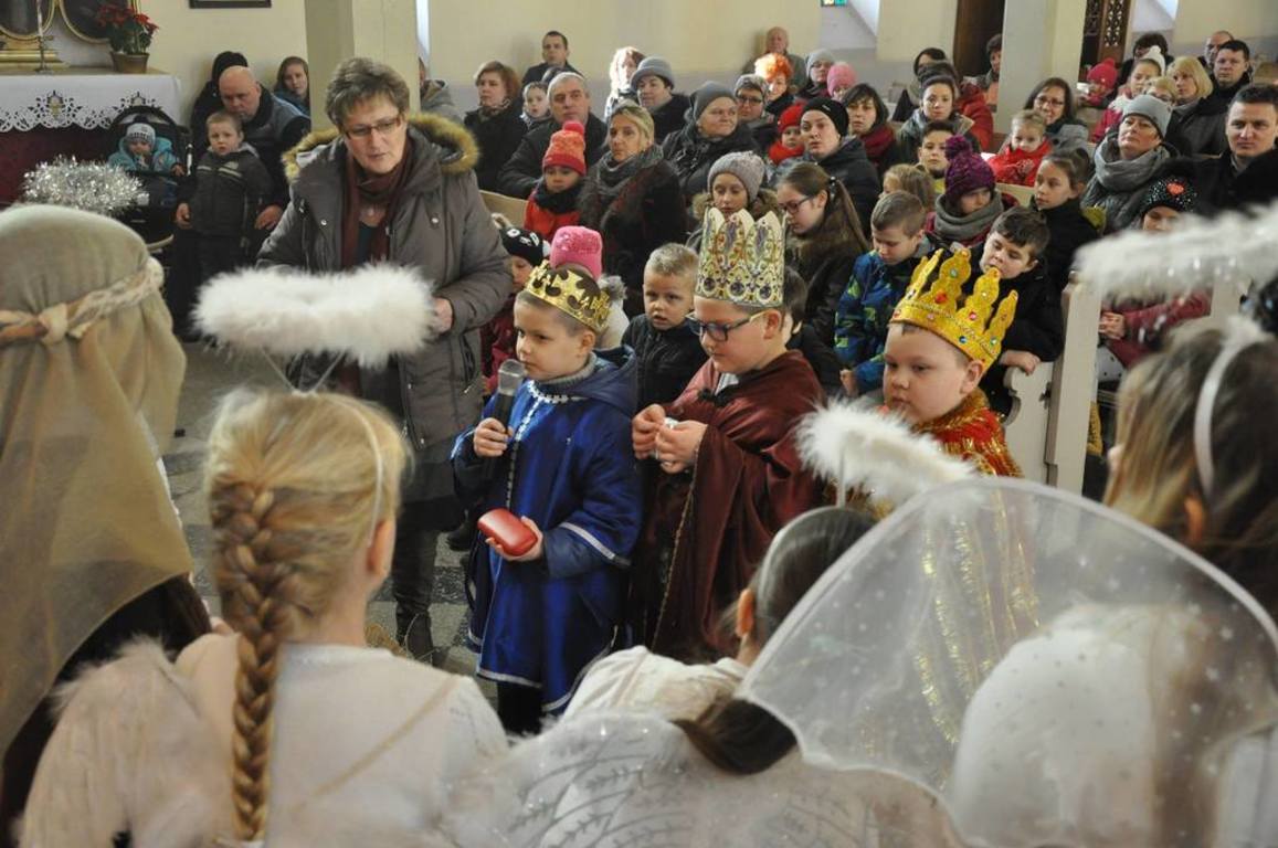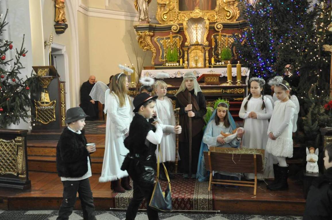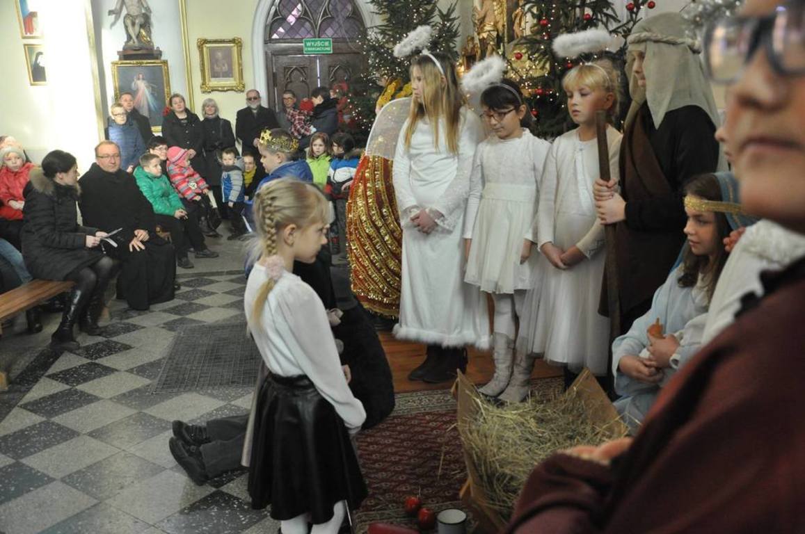 Wszyscy występujący "aktorzy" bardzo poważnie portaktowali zadanie i jak najwierniej wcielili się w swoje role. Po zakończonym występię rozległy się w kosciele gromkie brawa, a na małych aktorów czekały już podziękowania i słodkie upominki od ks. proboszcza Wojciecha Rzeźnika.