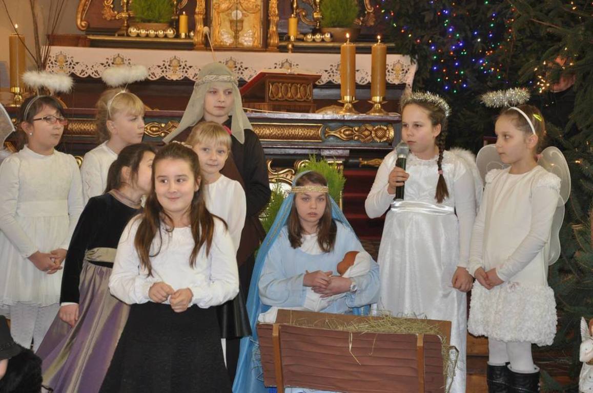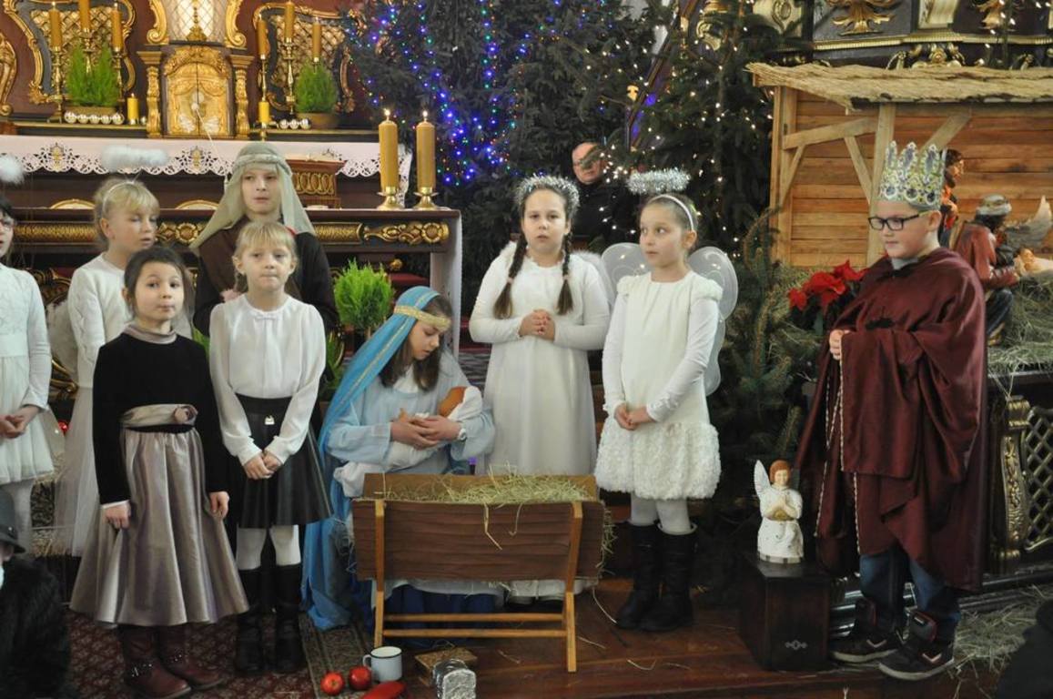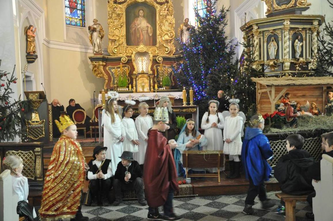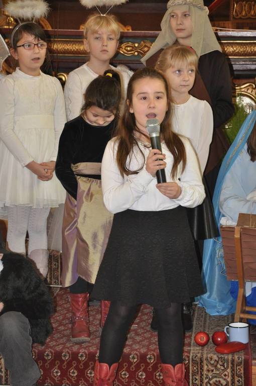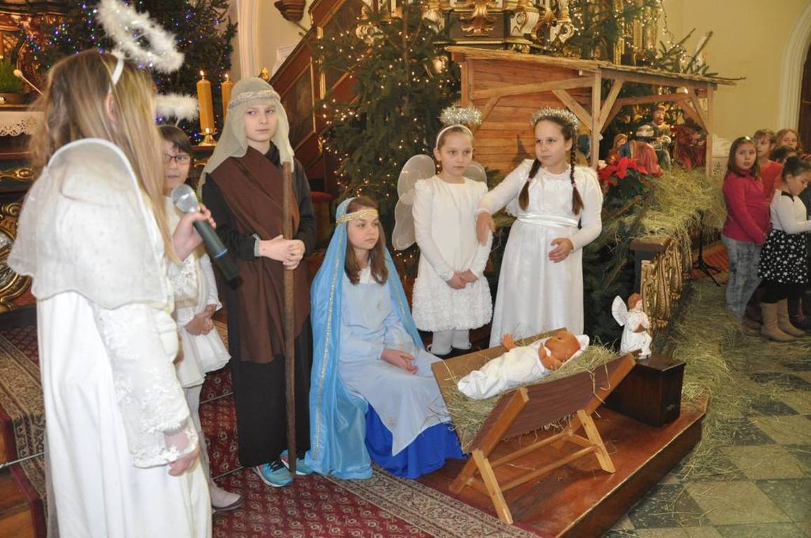 Wszyscy występujący "aktorzy" bardzo poważnie portaktowali zadanie i jak najwierniej wcielili się w swoje role. Po zakończonym występię rozległy się w kosciele gromkie brawa, a na małych aktorów czekały już podziękowania i słodkie upominki od ks. proboszcza Wojciecha Rzeźnika.