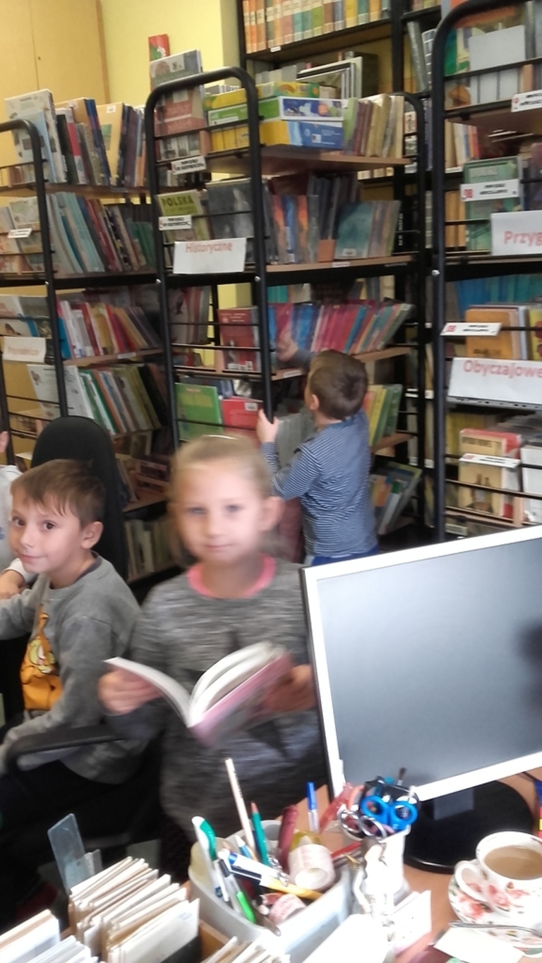 19 października 2016 roku klasa "0" razem z Panią Magdą odwiedziła bibliotekę szkolną. Przedszkolaki z wielkim zaciekawieniem i radością zapoznały się z magicznym dla nich miejscem. Niektóre dzieci bywały wcześniej w bibliotece, towarzyszyły swojemu starszemu rodzeństwu, rodzicom. Jednak zdecydowana większość widziała tyle książek po raz pierwszy. Przedszkolaki poznały podstawowe reguły zachowania się w bibliotece, dowiedziały się jak wypożyczać książki, jak o nie dbać. Pani Magda wychowawczyni grupy ,,O" obiecała dzieciom, że niedługo przyjdą wypożyczyć książki. Będą je czytać w domu razem z rodzicami.