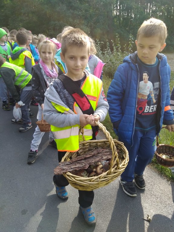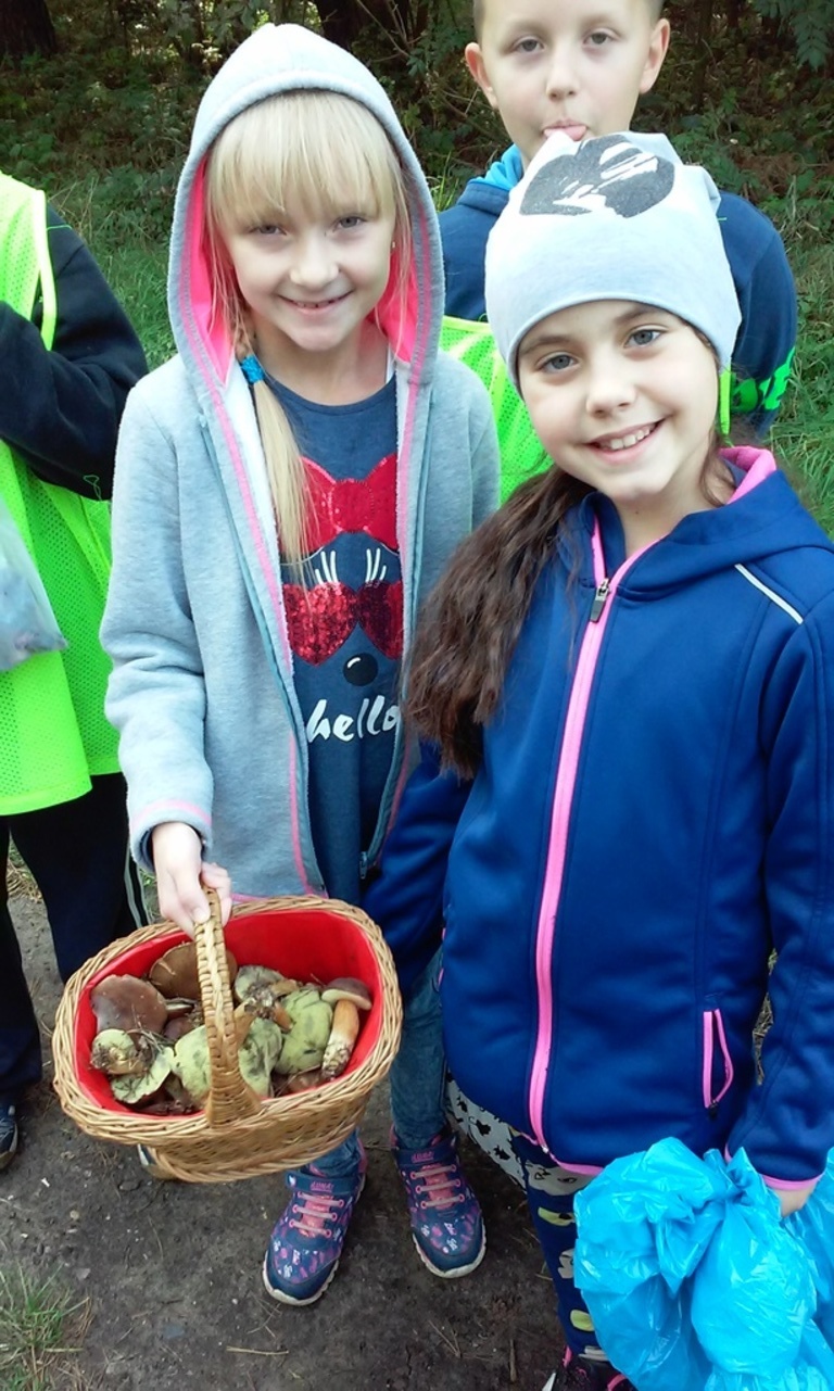 Uczniowie klas młodszych poświęcili swoje siły na wysprzątanie trenu wokół szkoły oraz parku, a poźniej udali się na wycieczkę do lasu i grzybobranie!