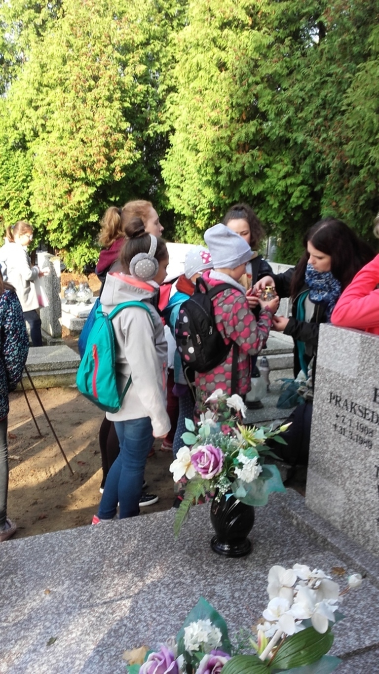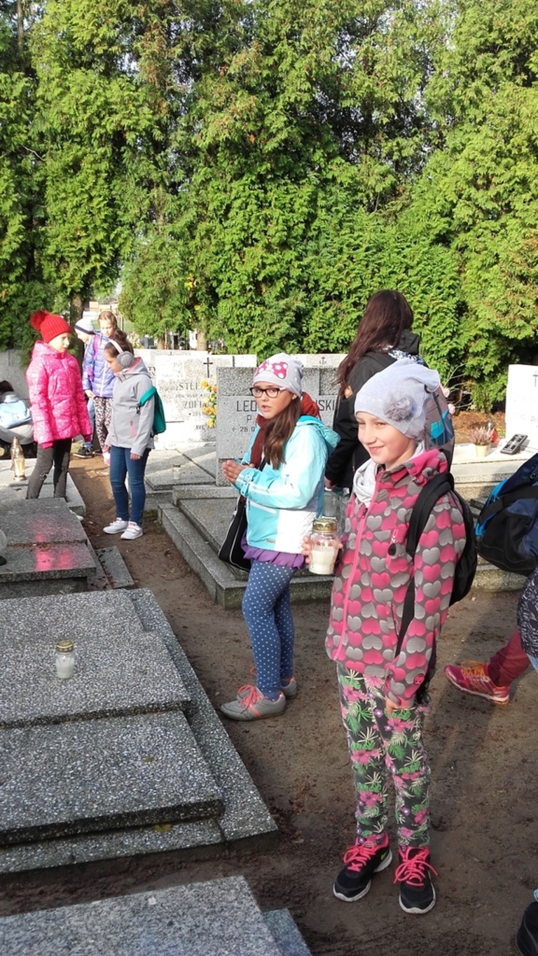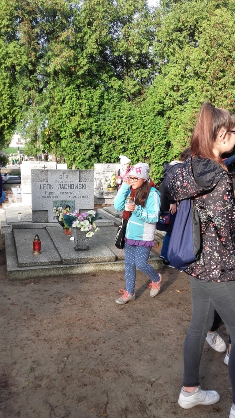 Po wspaniałym koncercie uczestnicy udali się na cmentarz, aby zapalić znicze na grobach powstańców oraz nauczycieli, którzy pracowali w Szkole Podstawowej w Golinie Wielkiej. Harcerze 8 DH pomodlili się także przy grobie założyciela drużyny, pwd. Piotra Lewandowskiego. Po krótkiej modlitwie przyszedł czas na samodzielne odwiedziny nagrobków krewnych, bliskich i znajomych.