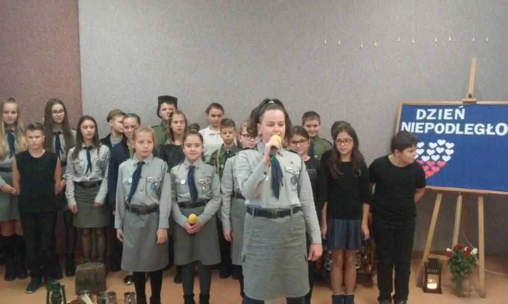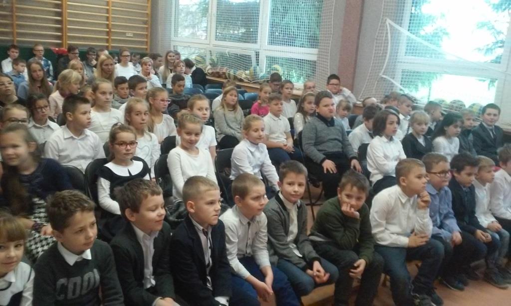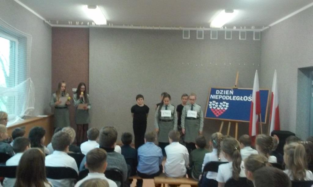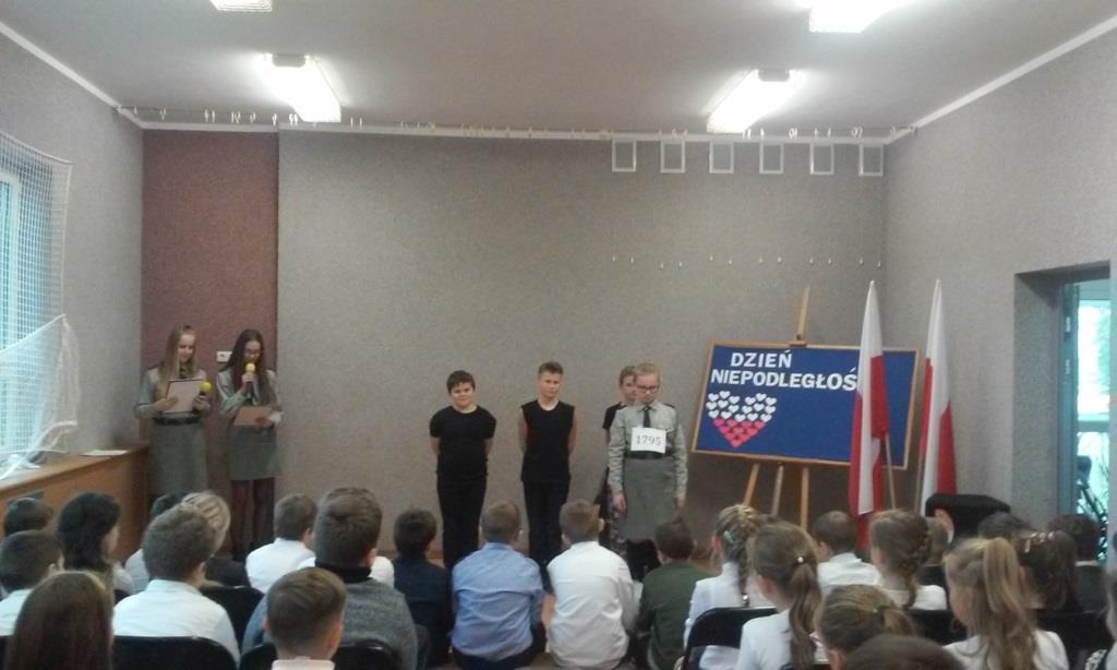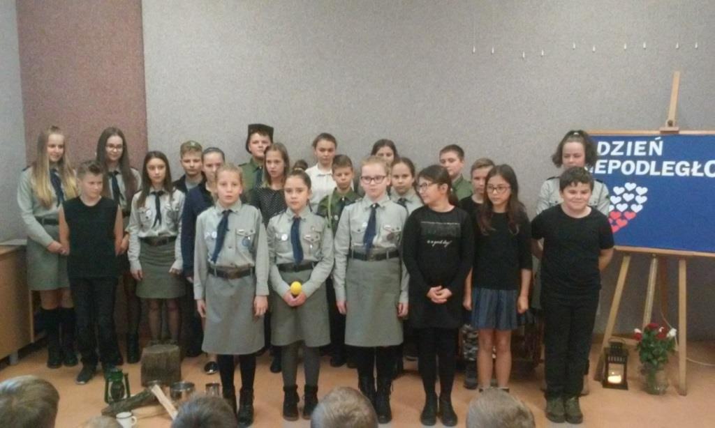 Apel przygowotowali uczniowie klasy VI razem z członkami 8 Drużyny Harcerskiej "Granatowe Tropiki". Występ bardzo spodobał się widowni, która z zaciekawieniem słuchała przygotowanego repertuaru. Większość ucznió postanowiła uświetnić to wydarzenie i ubrała się na galowo.