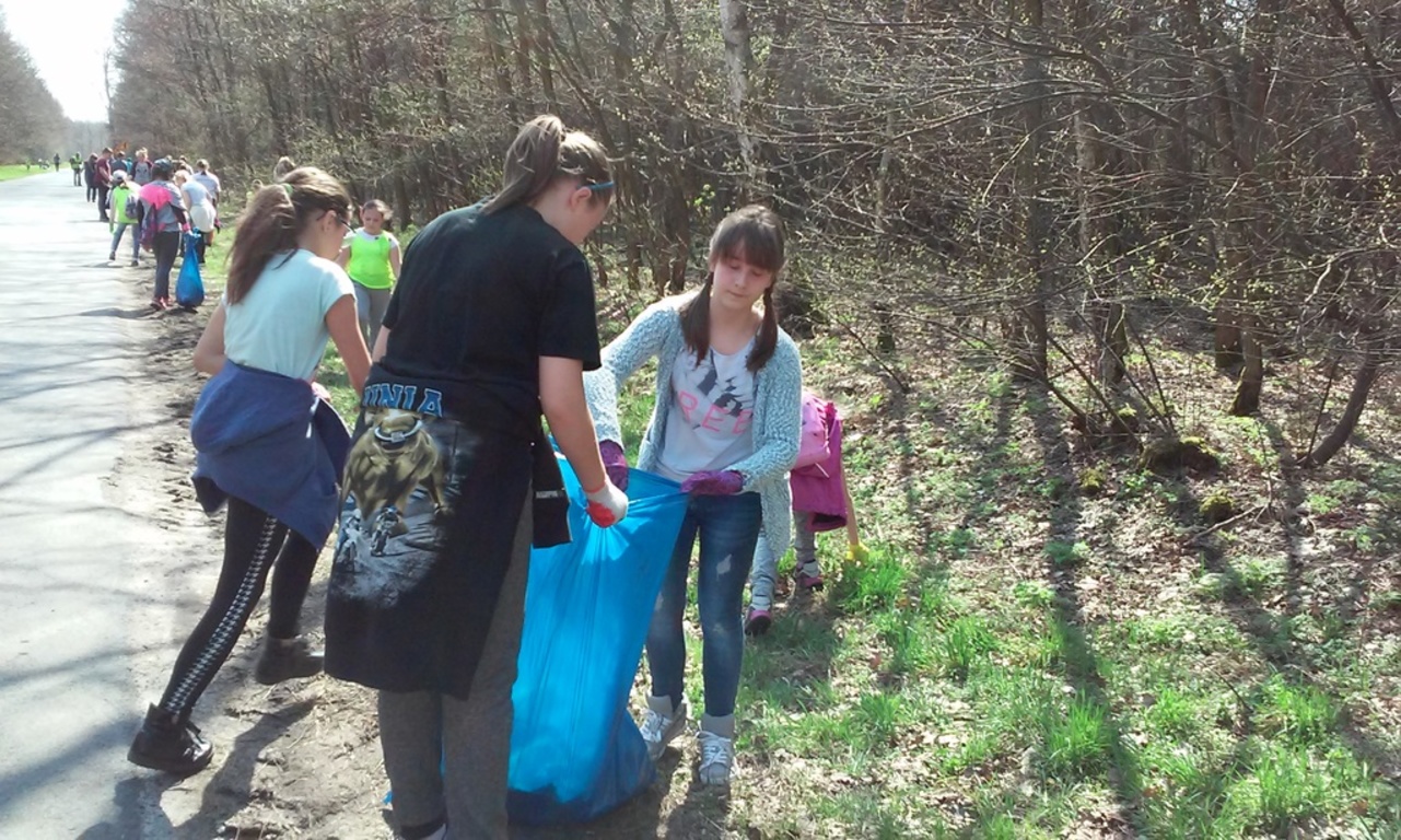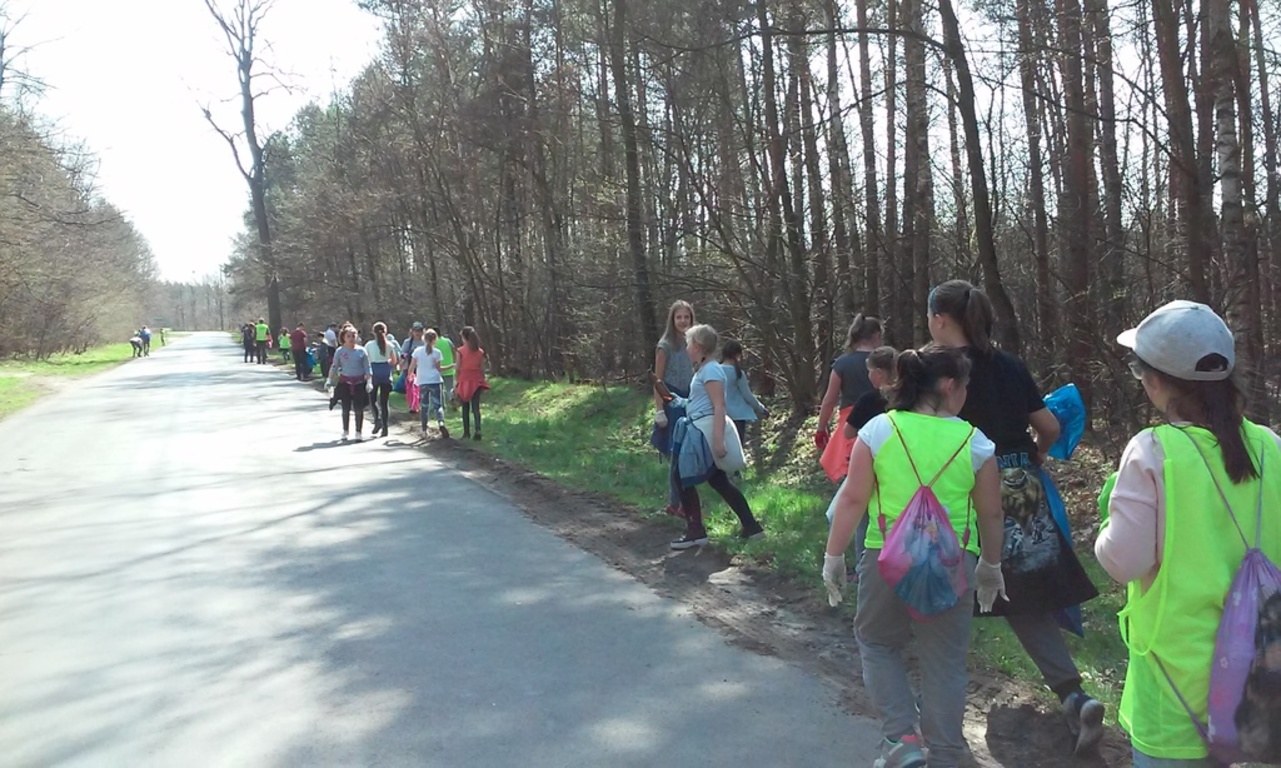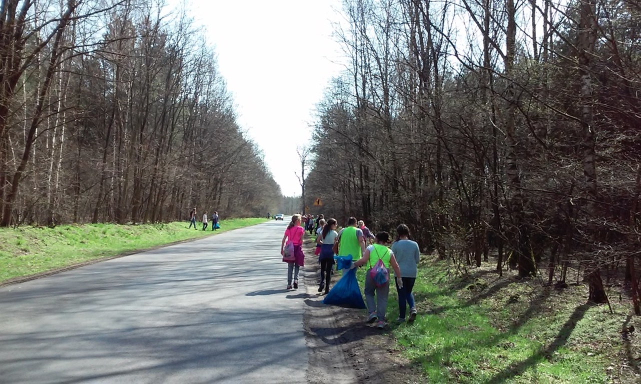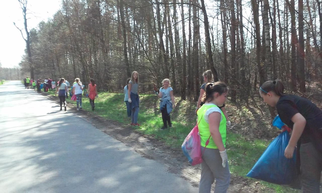 Klasy starsze wyruszyły w kierunku Gierłachowa, by posprzątać przydrożne tereny leśne, klasy młodsze natomiast wybrały się na "pożyteczny spacer" po lesie.