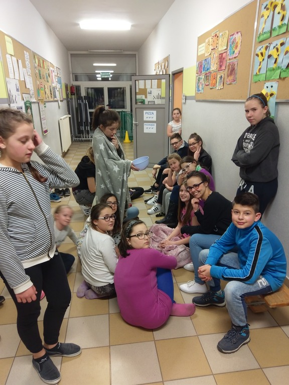 Seans filmowy miał na celu nie tylko wspólne wielogodzinne oglądanie wybranych filmów, ale również integrację uczniów sąsiadujących szkół oraz spędzenie w miłej, przyjaznej atmosferze czasu na wspólnej pasji. Organizatorem imprezy była pani Beata Demut, którą wspomogły panie Aleksandra Dudziak i Lidia Ratajczyk. W czasie tego nocnego spotkania fani kina obejrzeli kolejno produkcje: "Niezgodna", "Jumanji: Przygoda w dżungli", "Dzieciak rządzi", "Szkoła moich koszmarów". Kinomaniaków na maratony przyciagają także pizze w wielu smakach i słone przekąski.