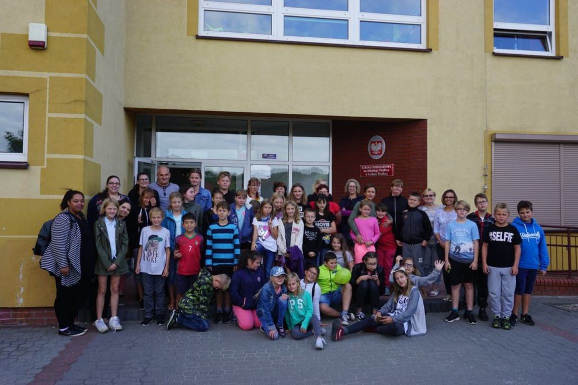 Międzynarodowe spotkanie dzieci i młodzieży w Szkole Podstawowej w Golinie Wielkiej rozpoczęliśmy 20 września 2018 r. W ten piękny jesienny dzień od samego rana trwały przygotowania na przyjazd naszych gości z Niemiec. Pełni oczekiwania, niecierpliwości i pozytywnych emocji powitaliśmy uczniów i nauczycielki z Grundschule w Töpchin o godzinie 18:00. Spotkanie rozpoczęliśmy poczęstunkiem, który dzięki swej niezwykłej uprzejmości, przygotowały mamy naszych uczniów.
