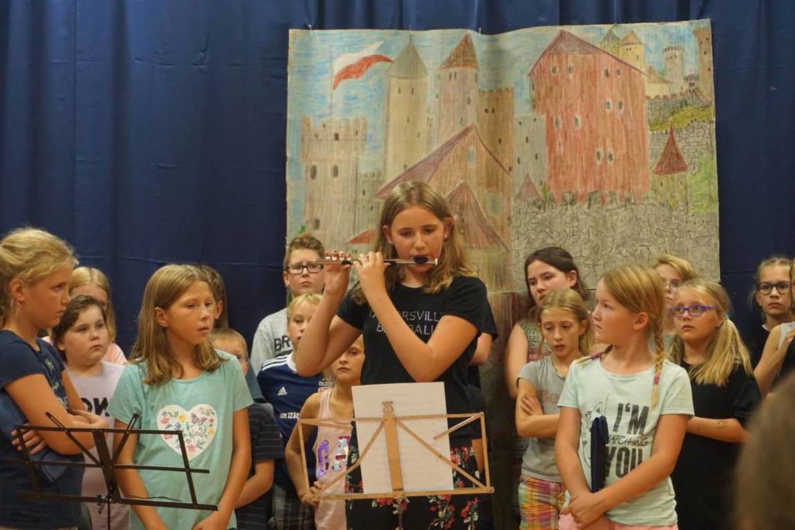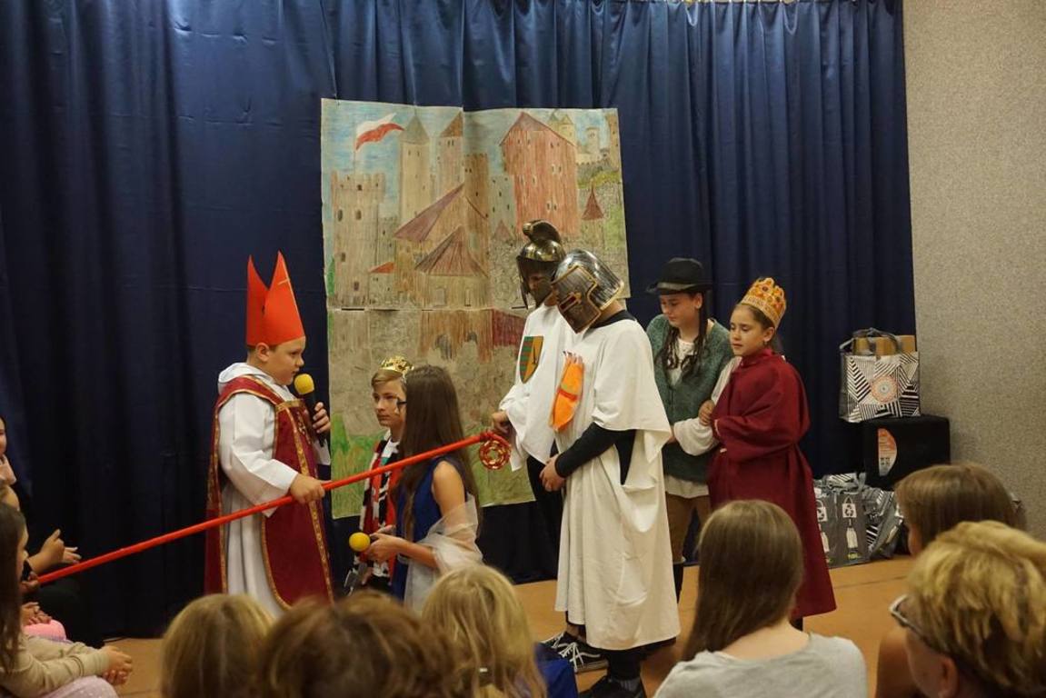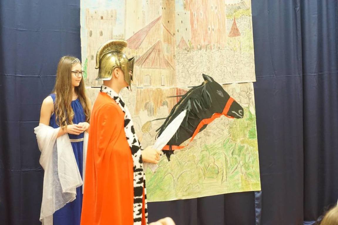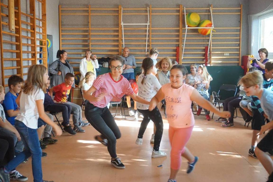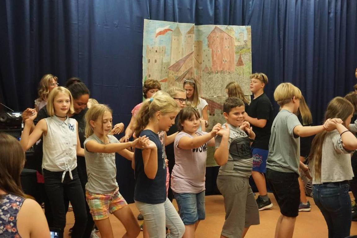 W sali sportowej odbyło się przywitanie gości i przedstawienie przygotowanych wcześniej programów. Uczniowie naszej szkoły mogli obejrzeć występ tańca line dance, posłuchać utworu „99 Luftballons”, kanonu „Panie Janie” w czterech językach, a także zatańczyć wspólnie z niemieckimi przyjaciółmi ludowy taniec niemiecki, wywodzący się z Brandenburgii. Uczniowie z Töpchin mieli okazję obejrzeć niemieckojęzyczny spektakl teatralny „Die weiße Dame/ Biała dama”, który członkowie Klubu Europejskiego przygotowali pod opieką nauczycielki języka niemieckiego p. Izabeli Pieprzyk, a także posłuchać wdzięcznych głosów chórzystów i chórzystek szkolnego chóru „Bel Canto” pod batutą pani Lidii Lokś. Po wieczorze pełnym emocji nasi młodzi goście udali się do rodzin goszczących.