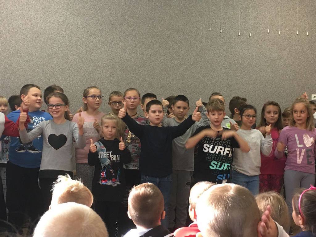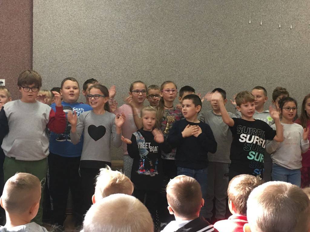 Na zakończenie uczniowie klasy 4 zaprezentowali piosenkę w języku niemieckim „Guten Tag”.