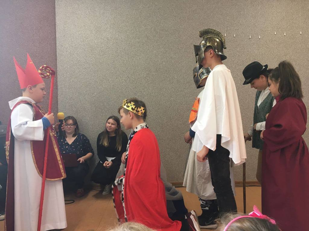 W ramach obchodów EDJO uczniowie naszej szkoły mieli okazję obejrzeć przedstawienie „Biała dama” w języku niemieckim, które zaprezentowali członkowie Klubu Europejskiego. Następnie reprezentanci klas 1-8 zmierzyli się w łamigłówkach, zadaniach i grach językowych, wykazując się przy tym znajomością języków obcych i wiedzą ogólną. Zwycięska grupa otrzymała upominki.