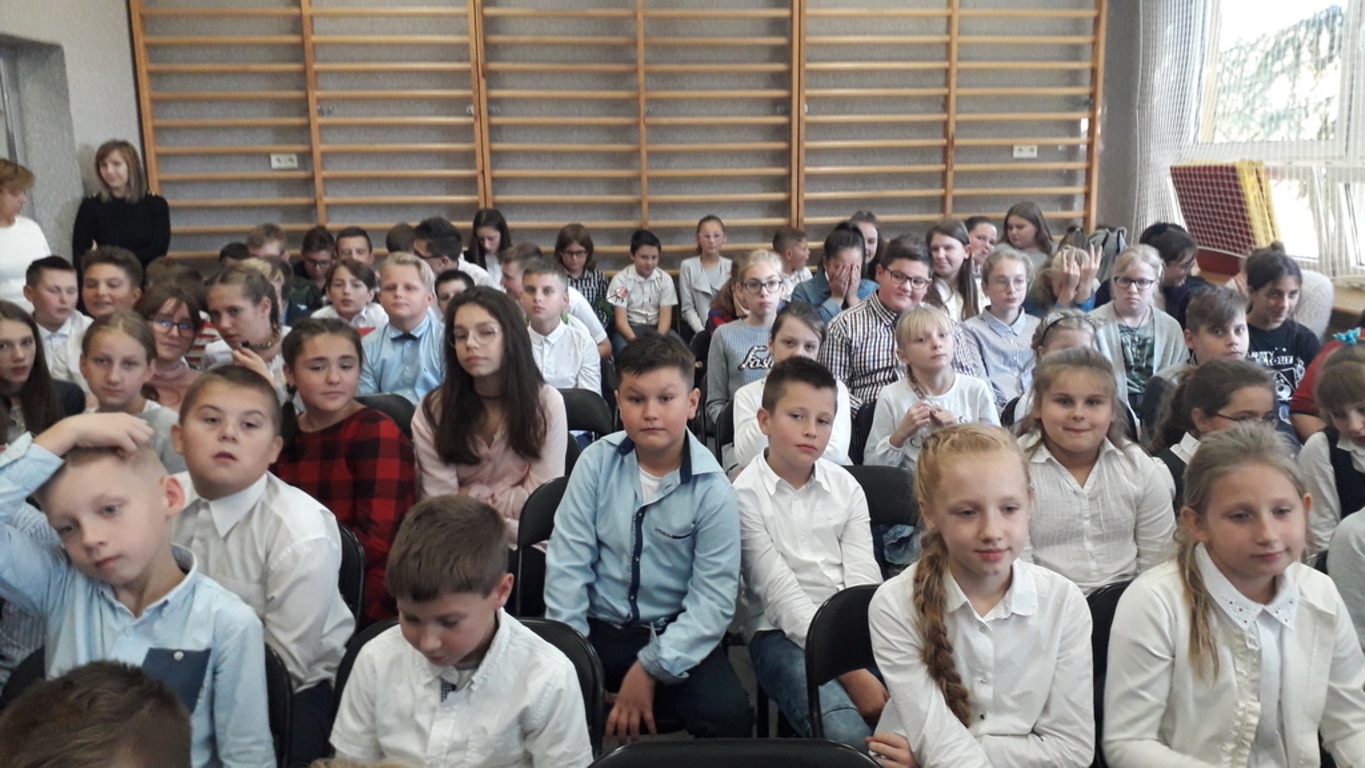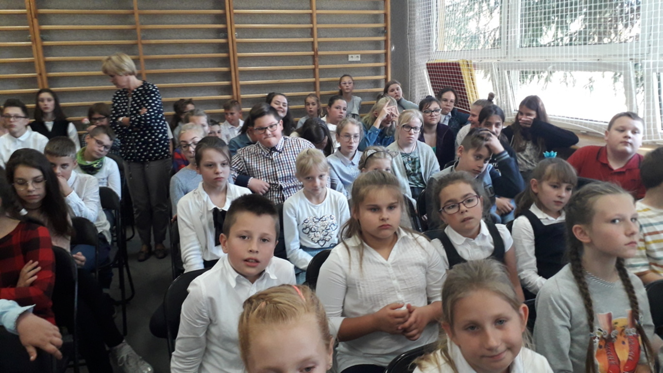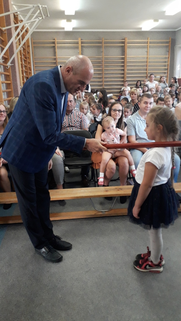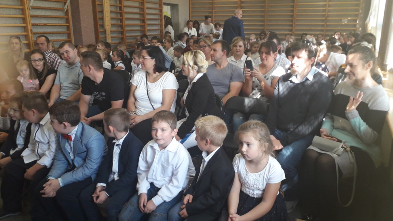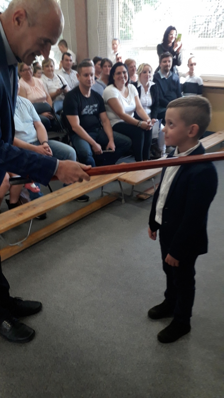 Dyrektor Szkoły Paweł Dudziak powitał zebranych rodziców, nauczycieli i i uczniów. Uczniowie klasy pierwszej i ich dwoje kolegów z piątej b zaprezentowali krótkie przedstawienie. Przygotowywali się do niego wytrwale. Po części artystycznej pierwszacy ślubowali być dobrymi Polakami, wzorowo się zachowywać oraz sumiennie się uczyć. Po złożeniu ślubowania dzieci zostały pasowane na uczniów.