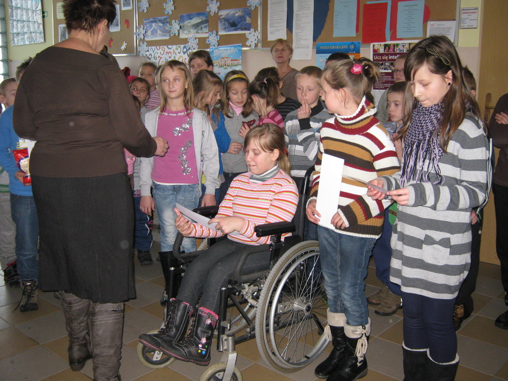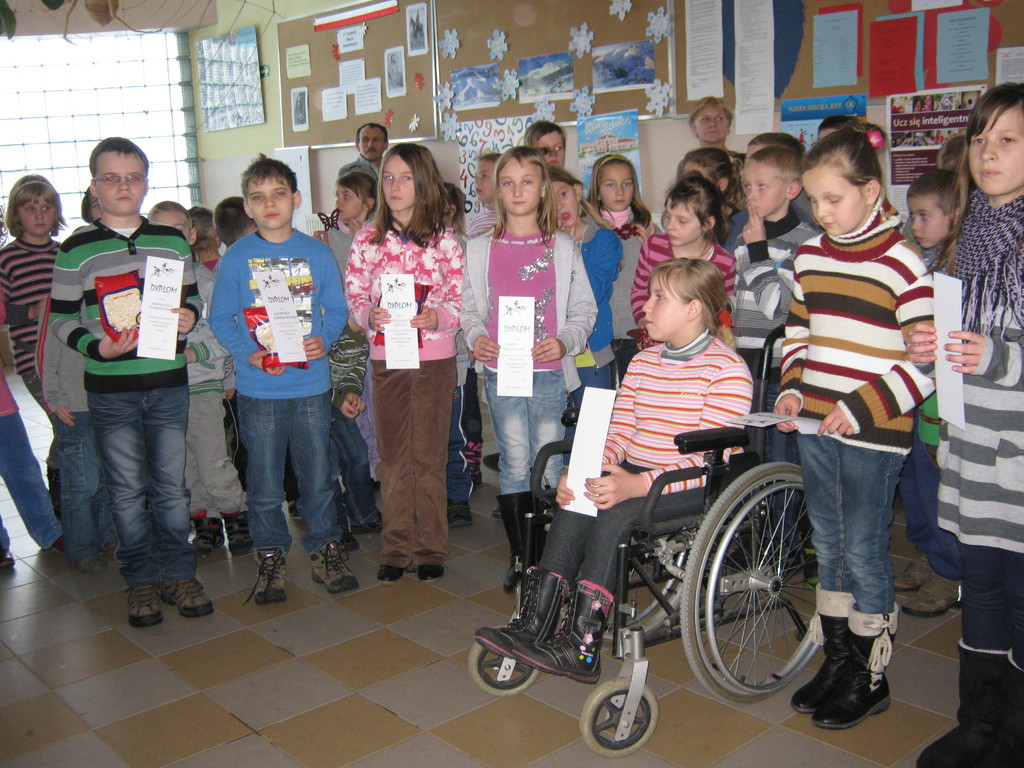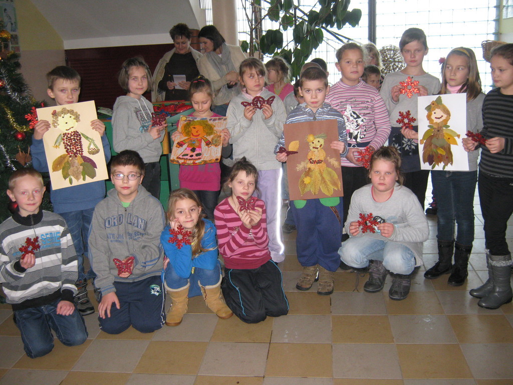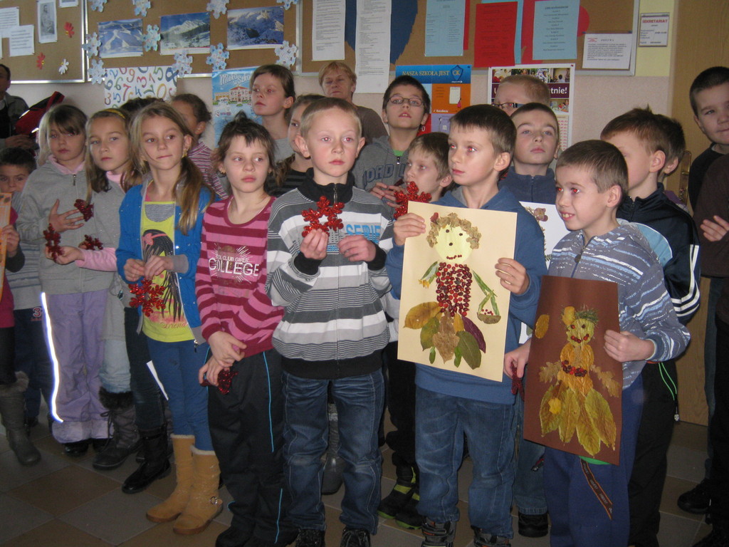 Grudniowy apel szkolny był dla sporej grupy uczniów okazją do zaprezentowania swoich talentów. Jury konkursu plastycznego dla klas I - III " Pani Jesień" miało wielki kłopot z wyłonieniem zwyciężców. Wykonane w grupach i indywidualnie wizerunki znanej Pani były tak urocze, że sędziowie postanowili wyróżnić aż sześć prac. Zwycięzcy otrzymali w nagrodę kolorowe gwiazdki.