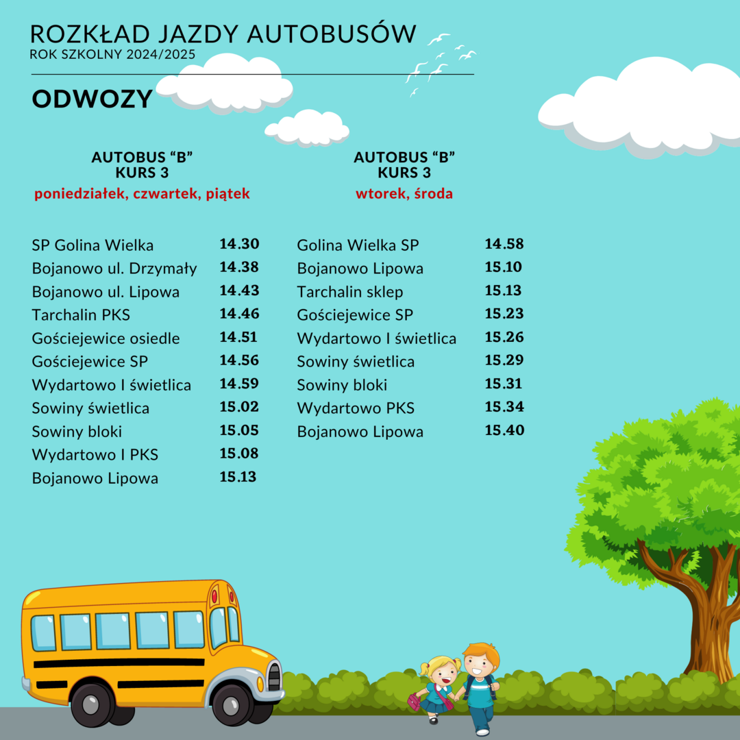 Rozkład jazdy autobusów w roku szkolnym 2024/2025