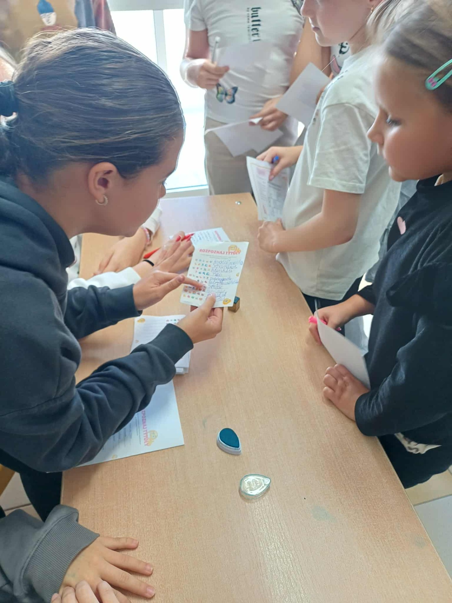 Za każde poprawnie wykonane zadanie uczniowie otrzymywali pieczątkę na specjalnej karcie. Każda pieczątka była fragmentem tajemniczego hasła. Zebranie całego hasła dawało szansę udziału w losowaniu nagrody-niespodzianki! 🎁
