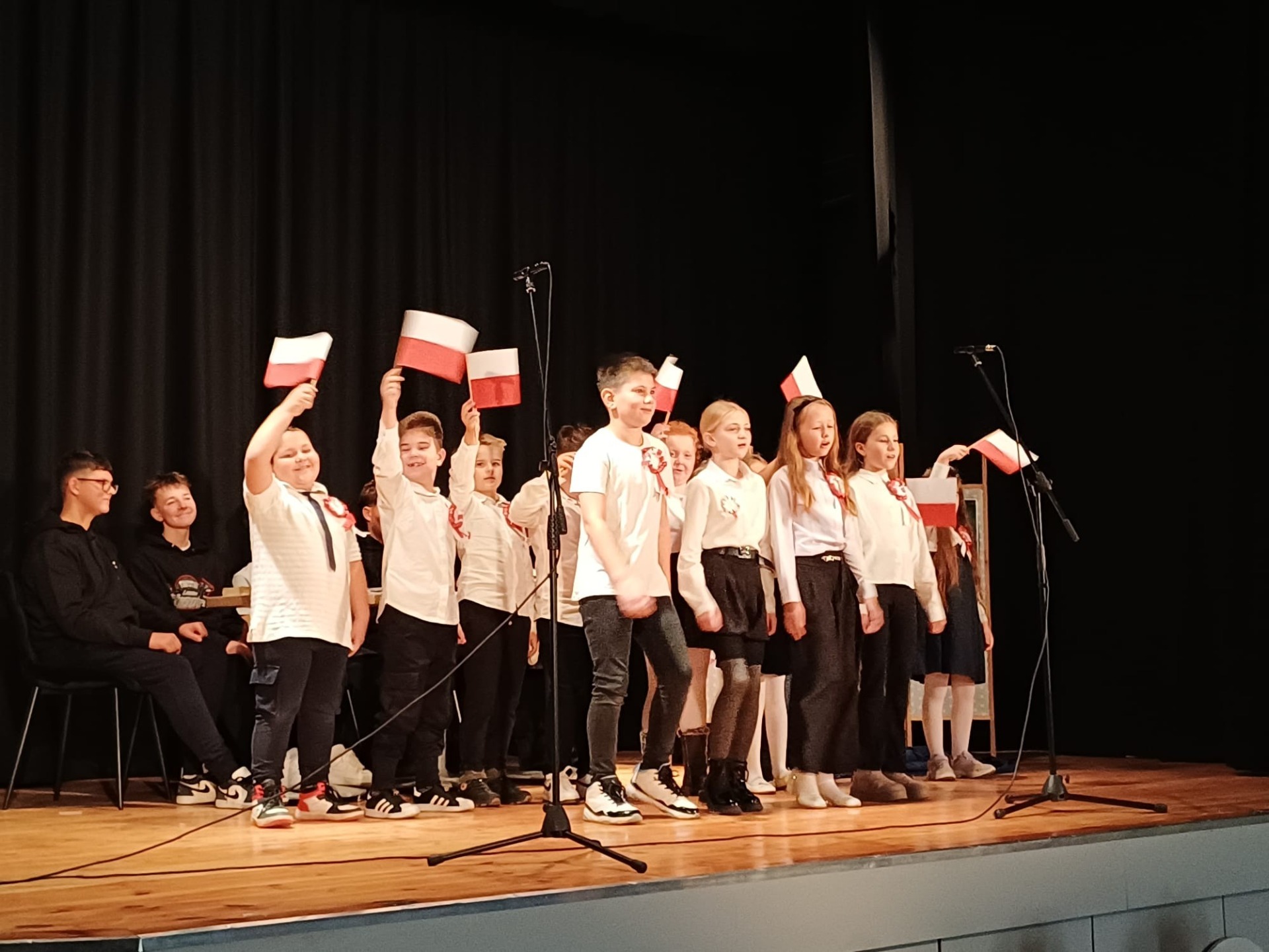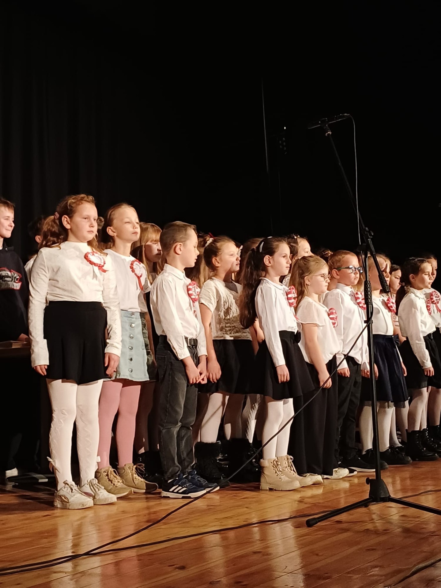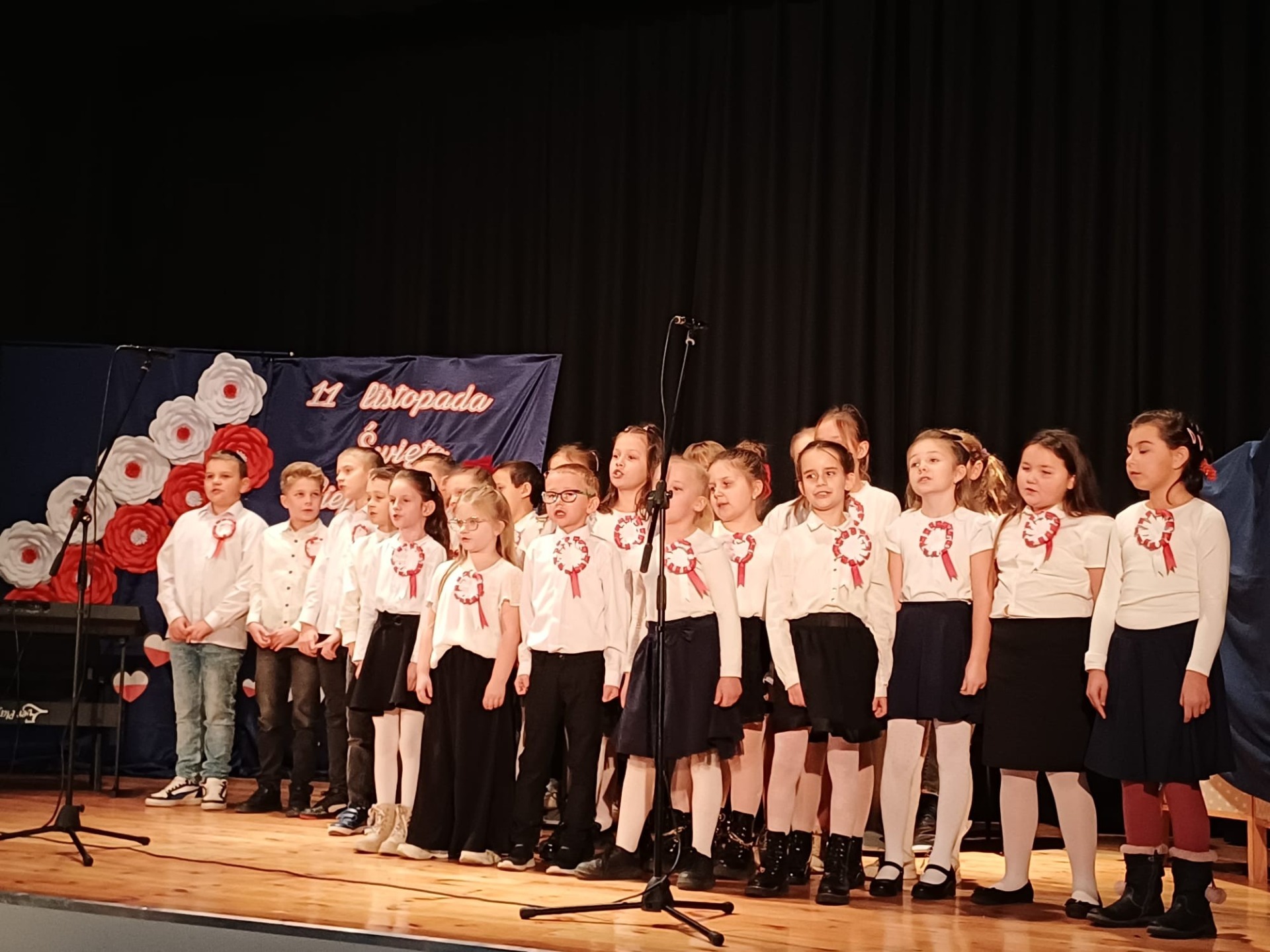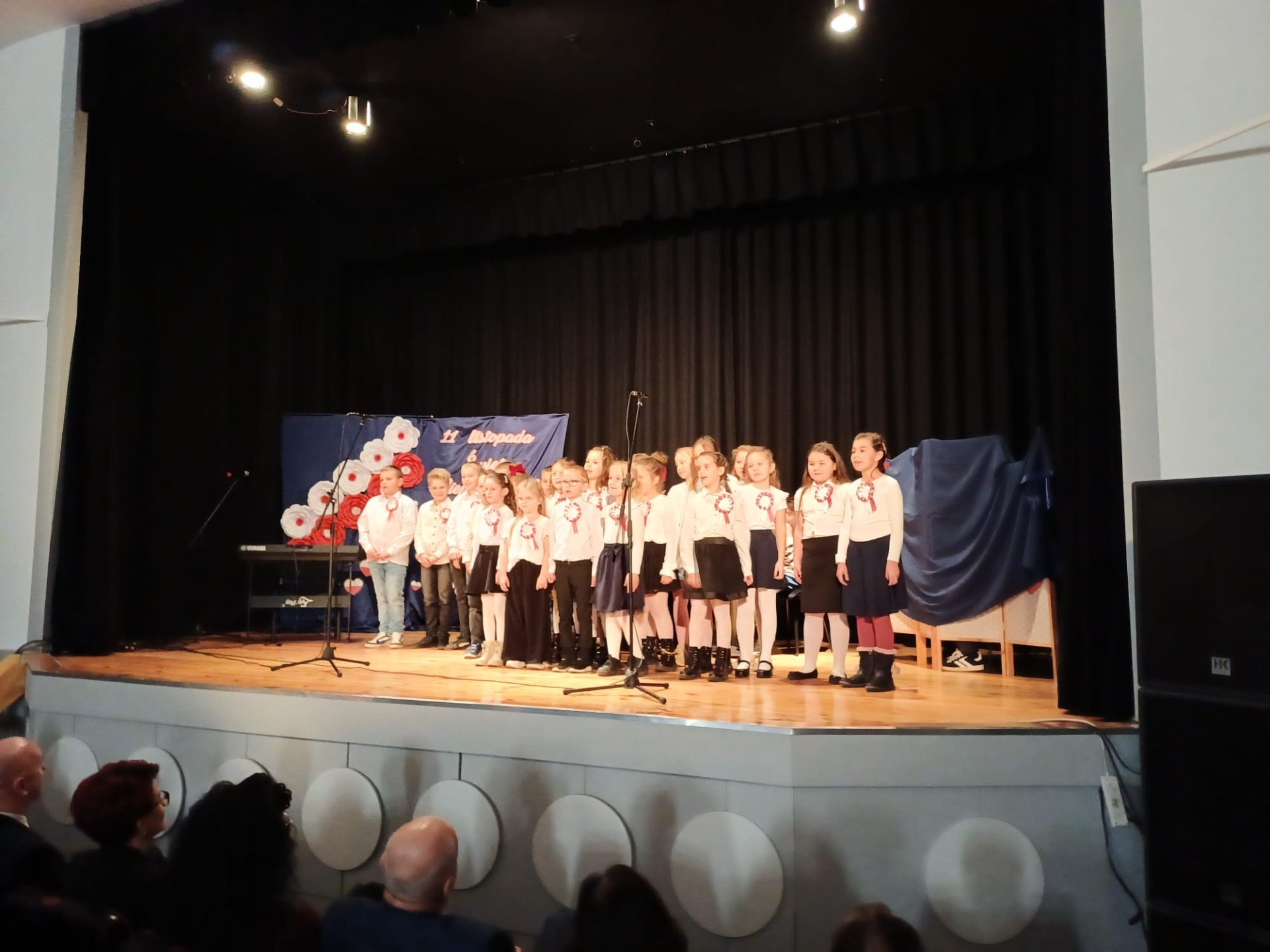 Występ uświetniły piękne piosenki patriotyczne w wykonaniu uczniów klas I–IV oraz instrumentalne wykonanie "Roty" przez skrzypaczkę Hannę Kozak.