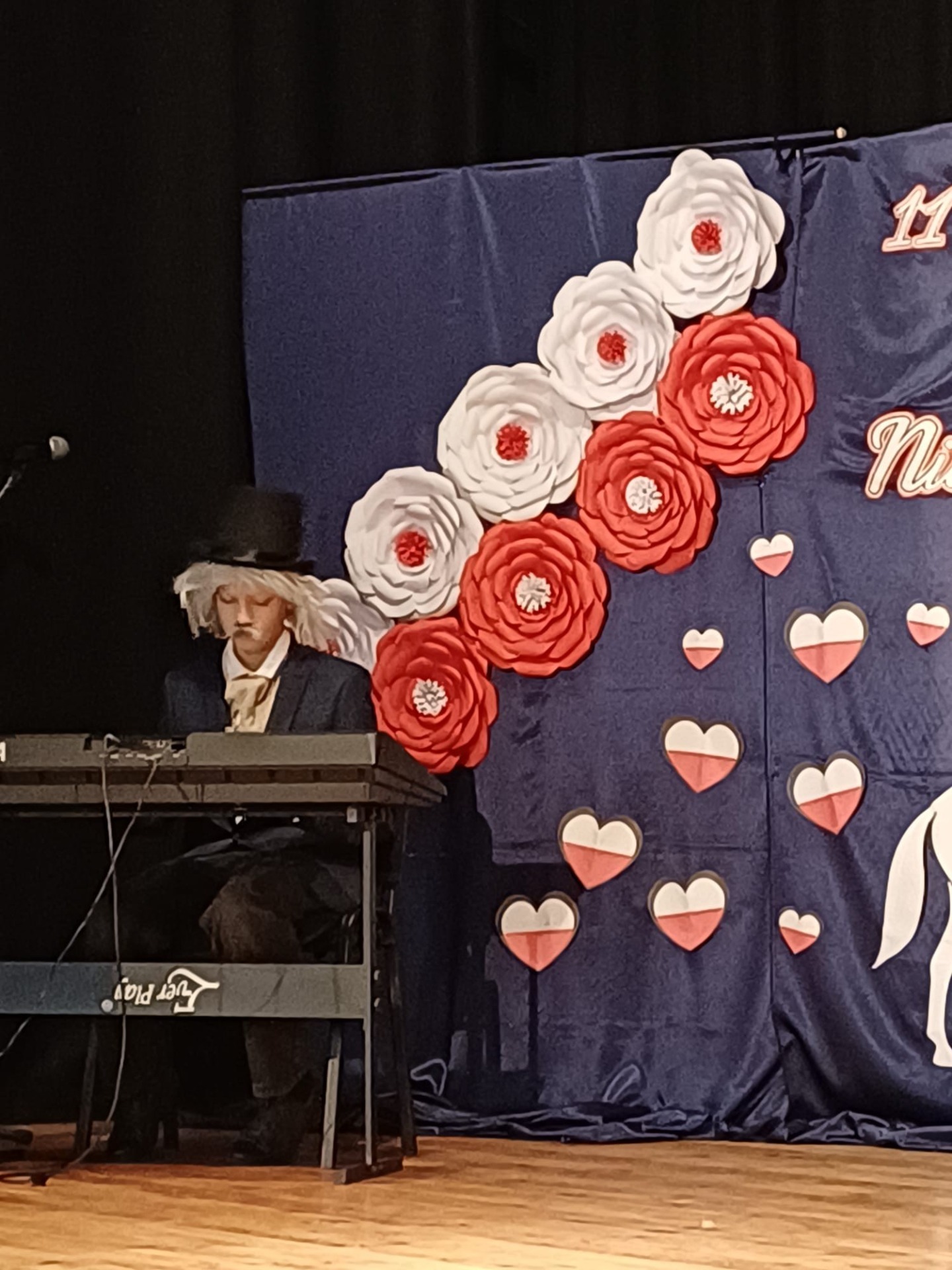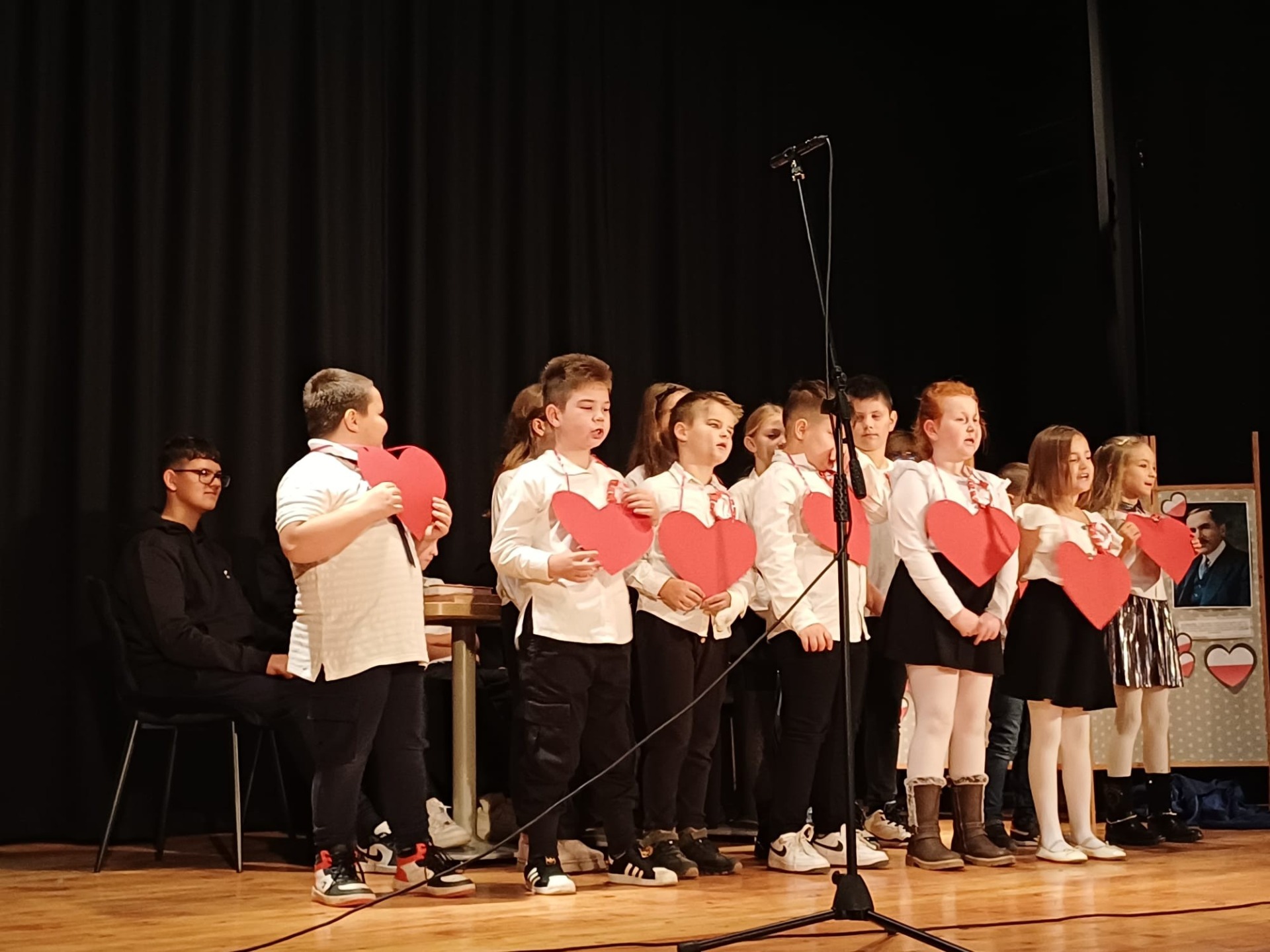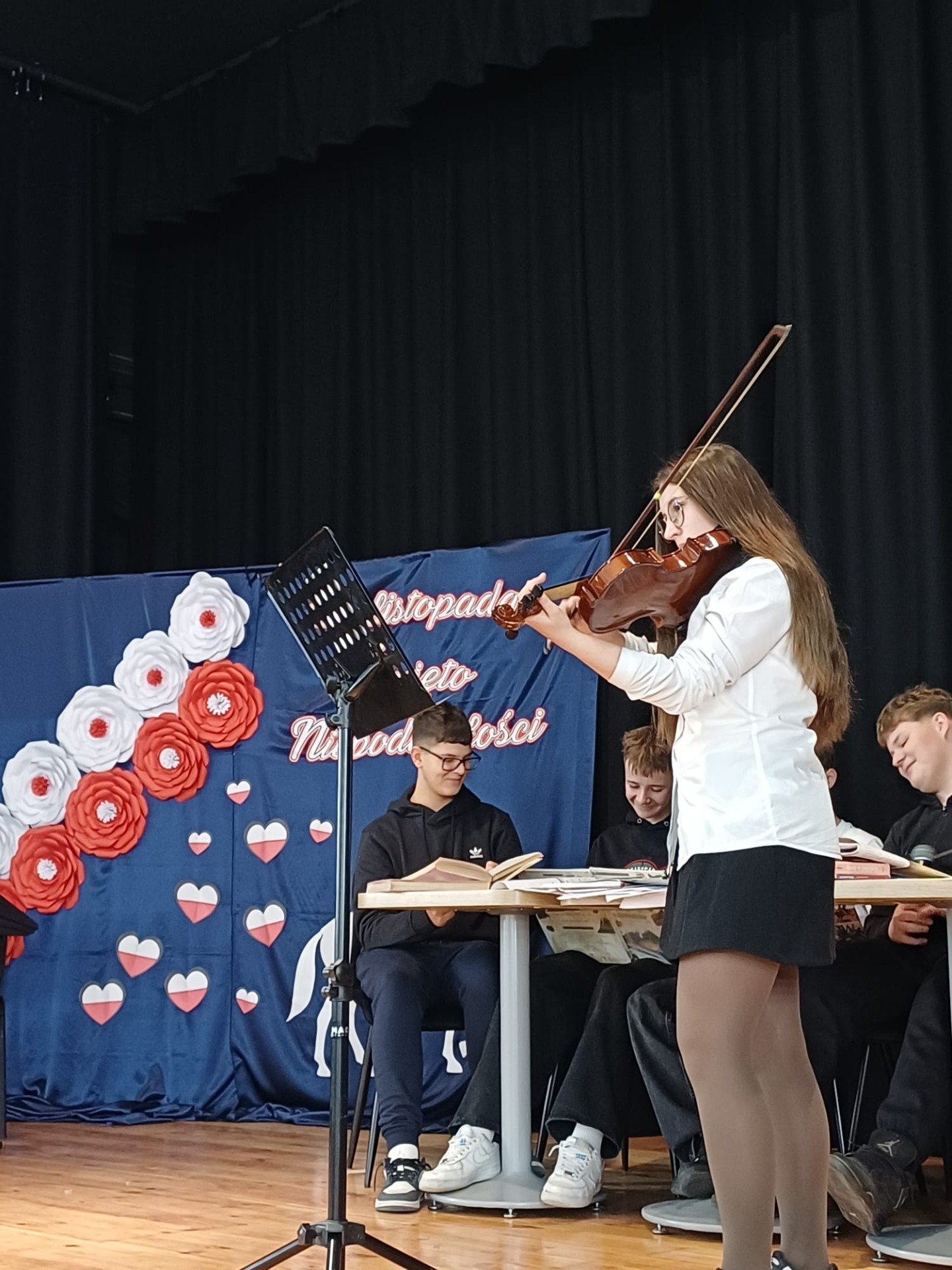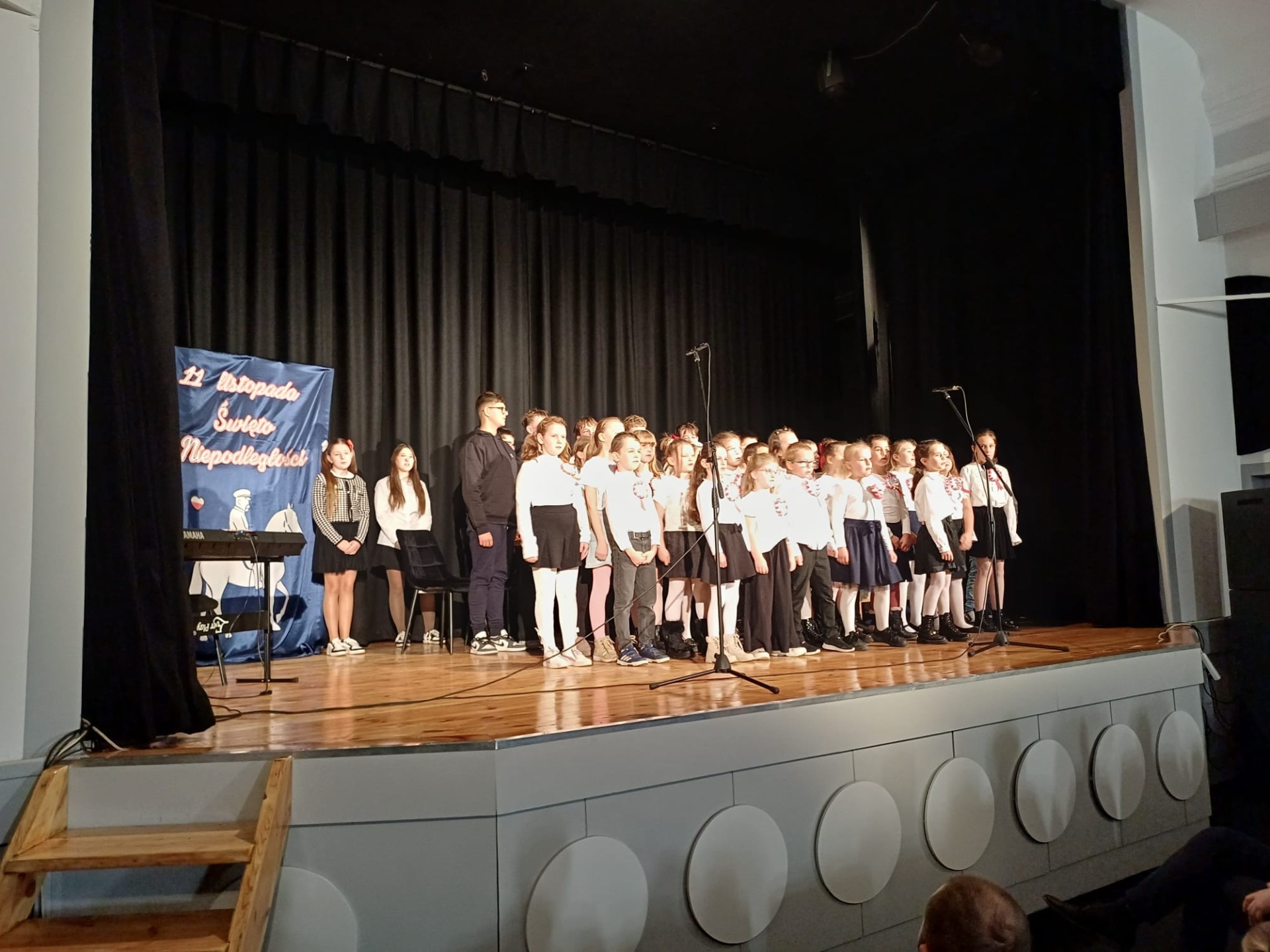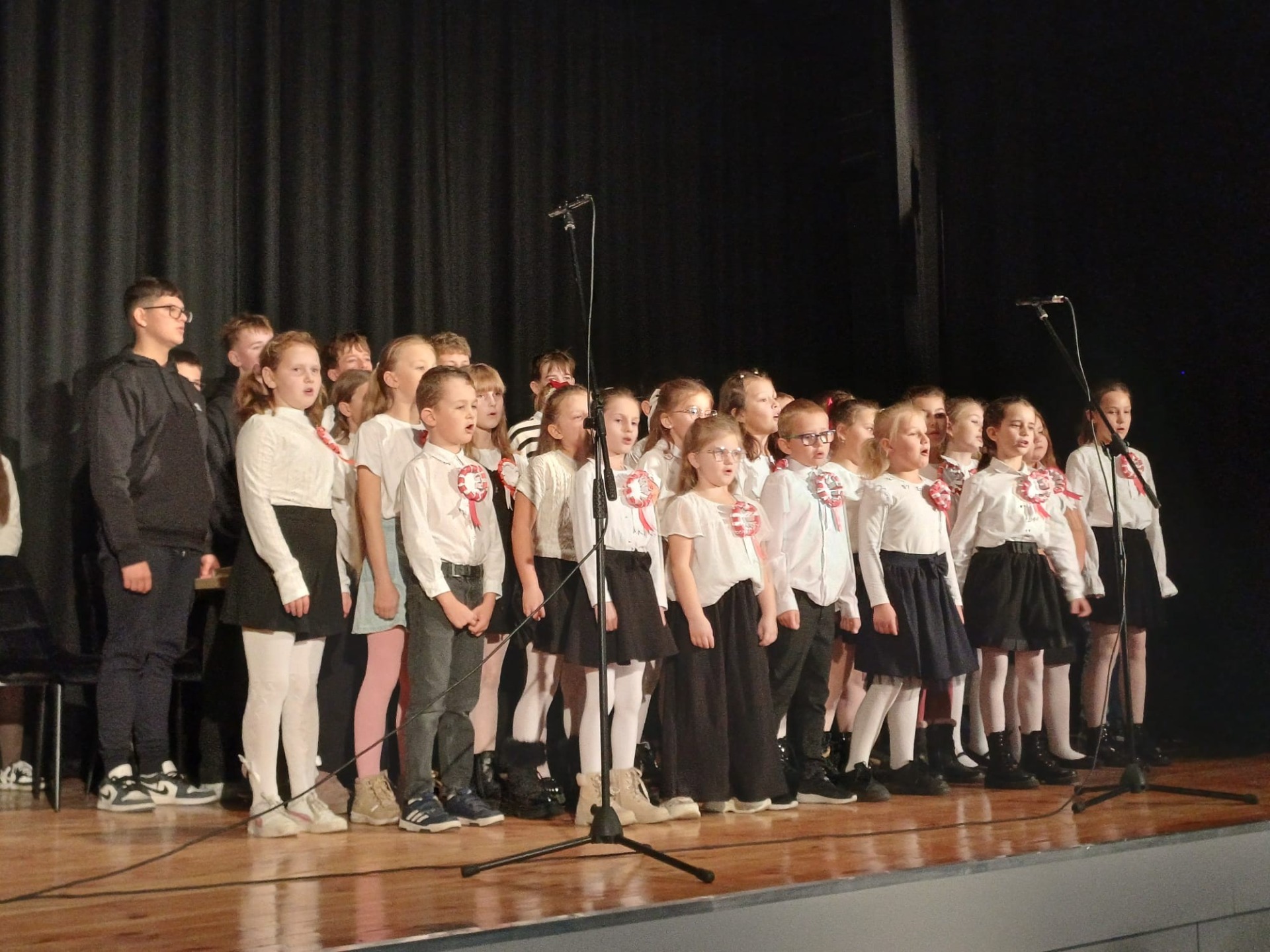 Występ uświetniły piękne piosenki patriotyczne w wykonaniu uczniów klas I–IV oraz instrumentalne wykonanie "Roty" przez skrzypaczkę Hannę Kozak.
