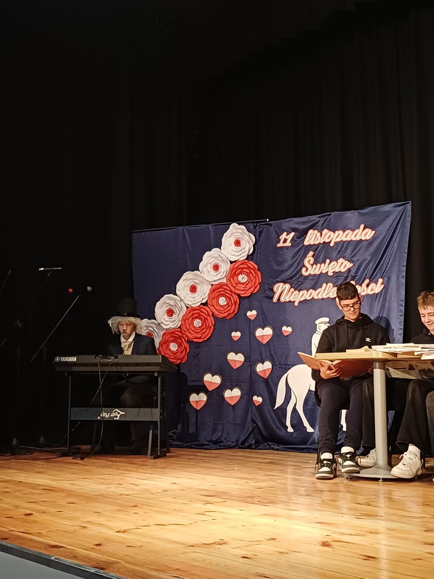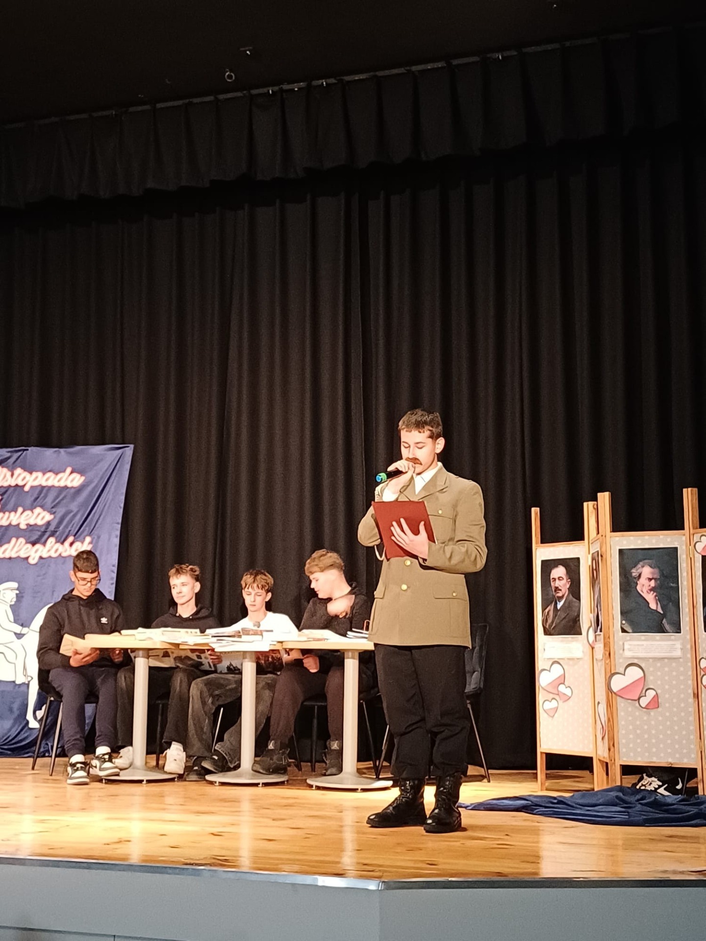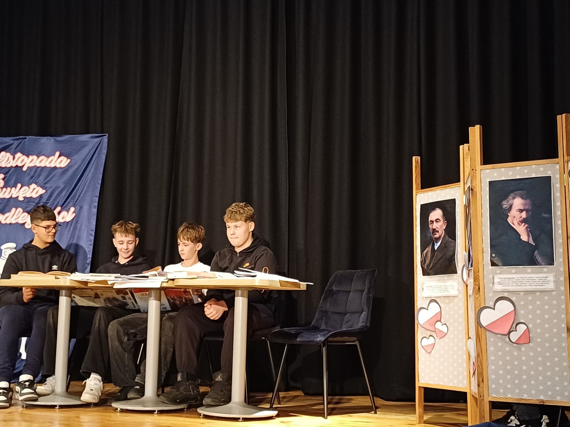 Dziś natomiast, 11 listopada, uczniowie naszej szkoly zaprezentowali na scenie Domu Kultury w Bojanowie krótką inscenizację o poszukiwaniu przez młodzież informacji na temat Ojców Niepodległości. Na scenie pojawiły się zjawy bohaterów narodowych - Józefa Piłsudskiego i Ignacego Paderewskiego, przypominając nam, jak wiele zawdzięczamy ich odwadze i miłości do Polski.