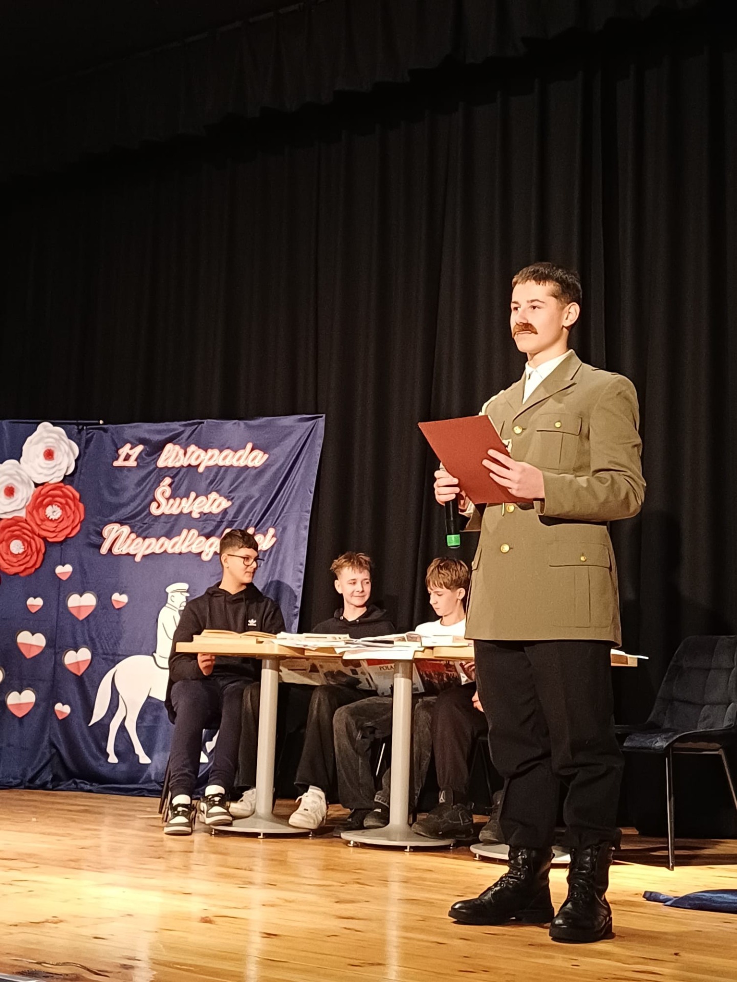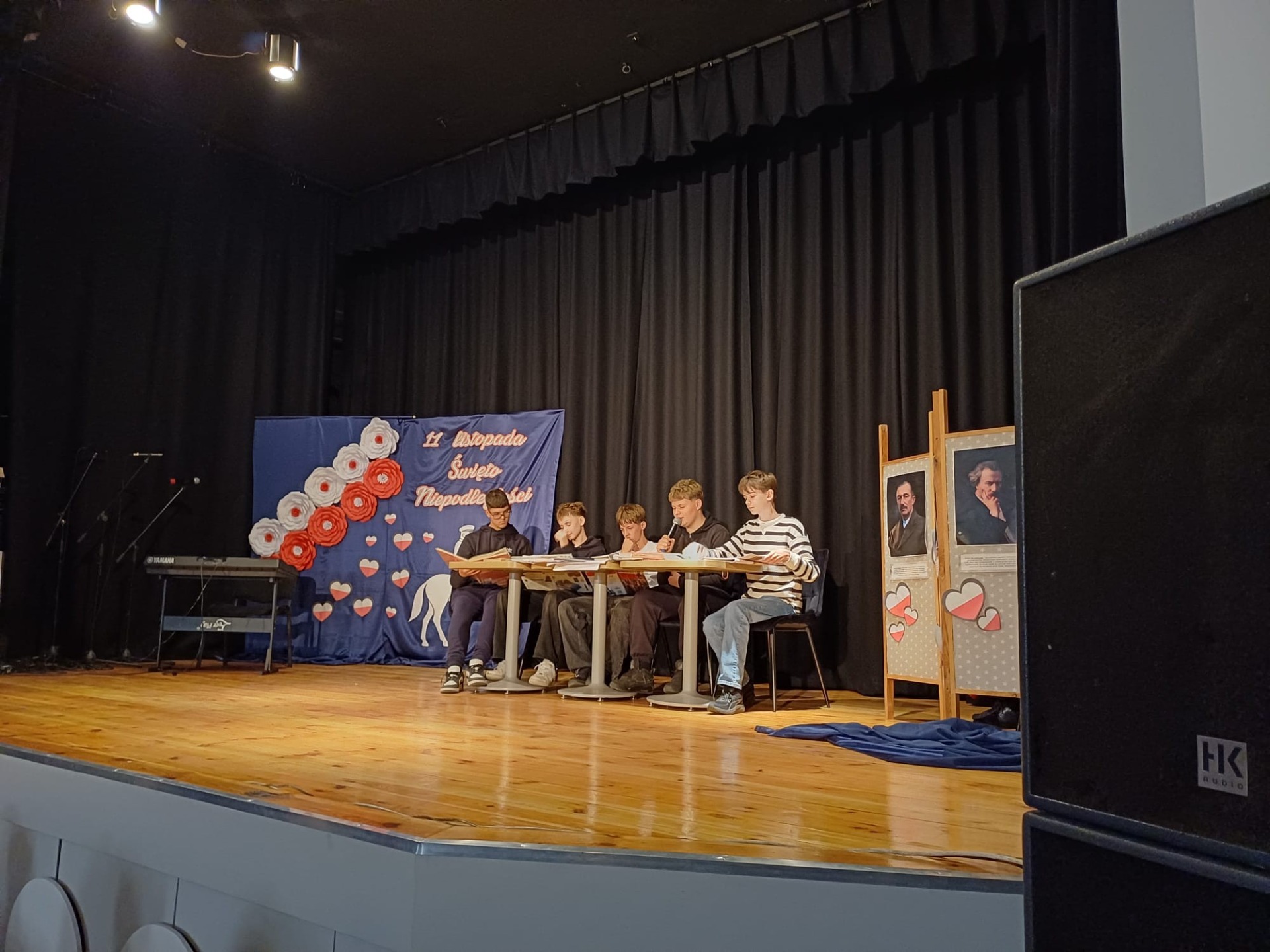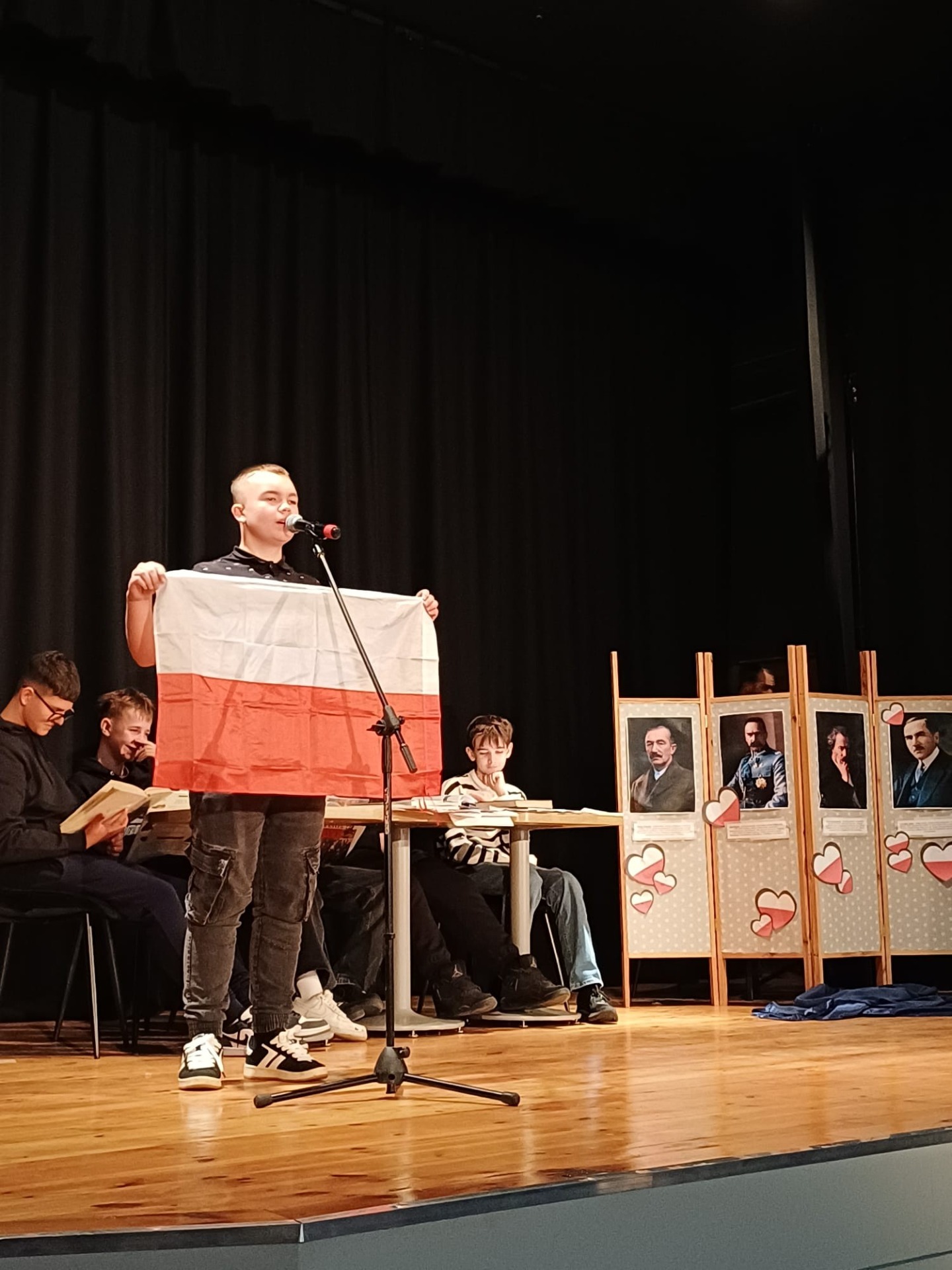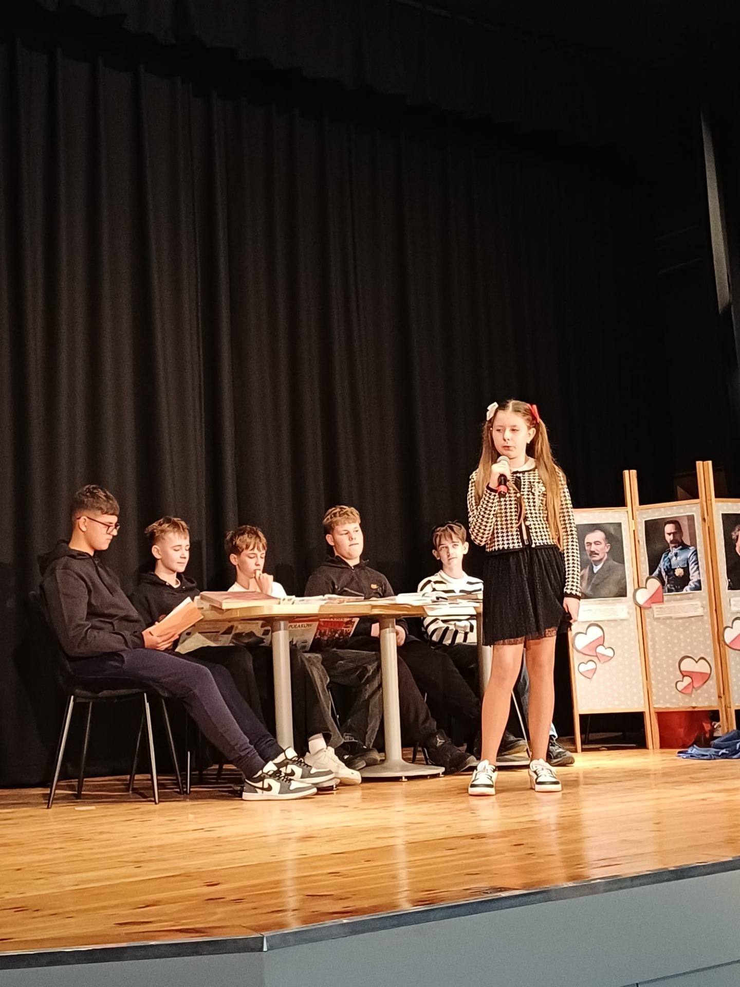 Dziś natomiast, 11 listopada, uczniowie naszej szkoly zaprezentowali na scenie Domu Kultury w Bojanowie krótką inscenizację o poszukiwaniu przez młodzież informacji na temat Ojców Niepodległości. Na scenie pojawiły się zjawy bohaterów narodowych - Józefa Piłsudskiego i Ignacego Paderewskiego, przypominając nam, jak wiele zawdzięczamy ich odwadze i miłości do Polski.