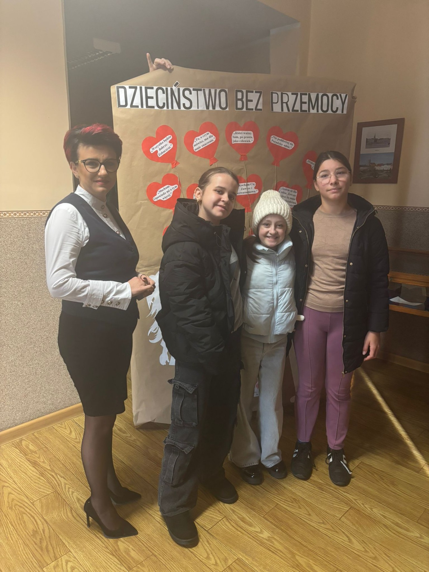 Odwiedziliśmy również Urząd Miasta Bojanowa i Panią Burmistrz, na której ręce przekazaliśmy ogromny plakat ze słowami wsparcia — takimi, jakich potrzebują młodzi ludzie (i każdy z nas), by poczuć się bezpieczniej i lepiej w trudnych chwilach. Plakat został przekazany zaprzyjaźnionym z nami Paniom z Ośrodka Pomocy Społecznej i to ściany ich siedziby będzie teraz zdobił, przypominając odwiedzającym, że każdy dobry gest i słowo mają znaczenie i potrafią leczyć.