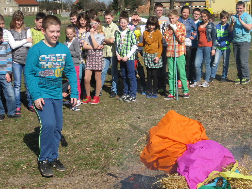Na jej przyjęcie przyjęcie przygotowaliśmy się starannie: słomiane kukły symbolizujące nielubianą na ogół poprzedniczkę, wiosenne gaiki, kolorowe akcenty ubioru, piosenki opiewające piękno tej pory roku. W ognisku spaliliśmy Marzanny, aby definitywnie zakończyć panowanie Zimy. Gromko zaśpiewaliśmy kilka "wiosennych" piosenek i wznieśliśmy w górę gaiki. Po dopełnieniu wszystkich obrzędów, pewni tego, iż Wiosna na dobre zapanuje, pożywialiśmy się upieczonymi przez mamy kiełbaskami.