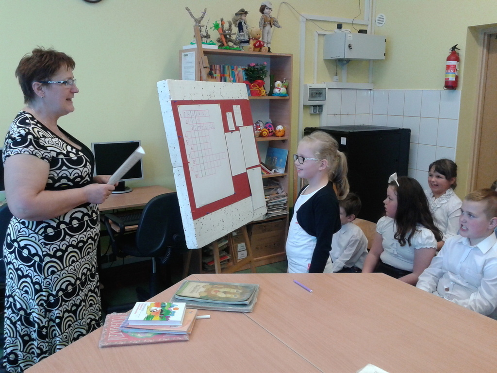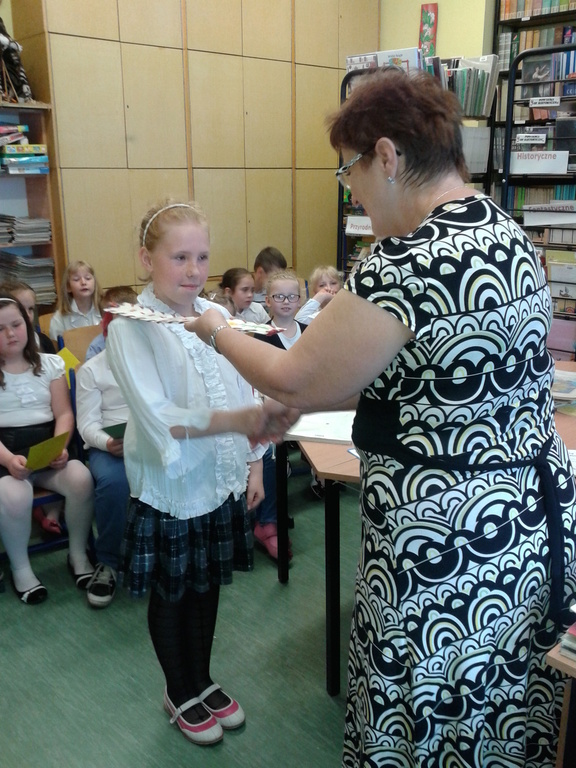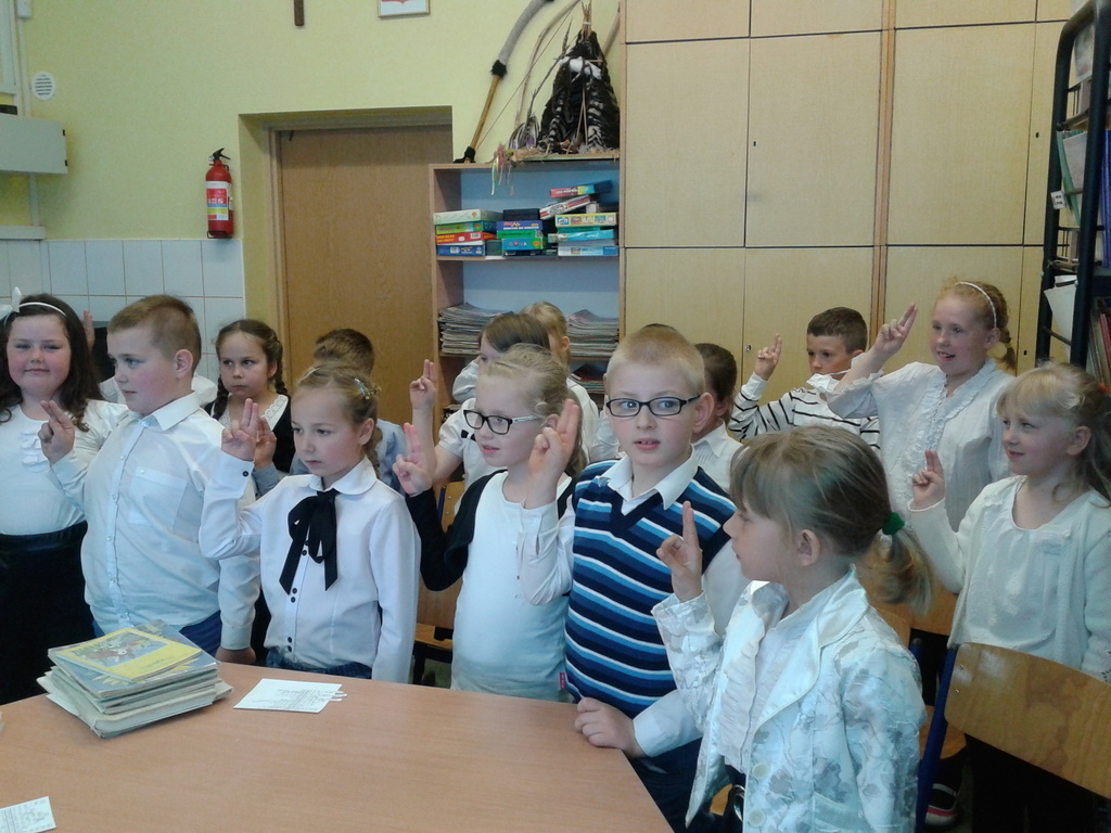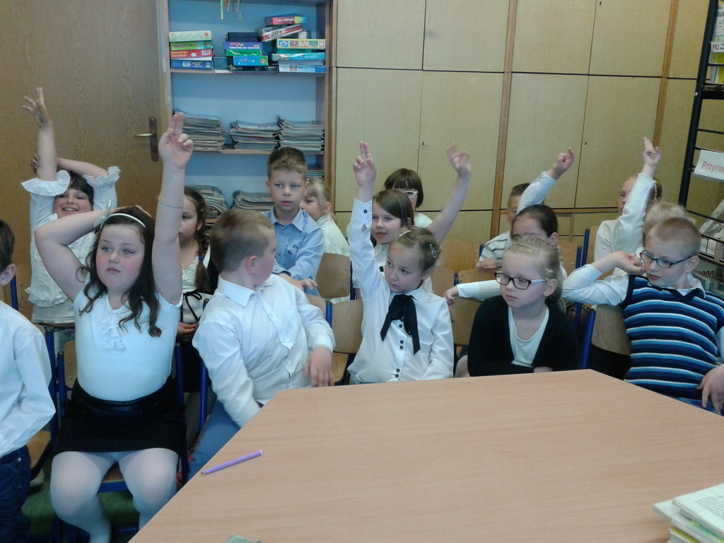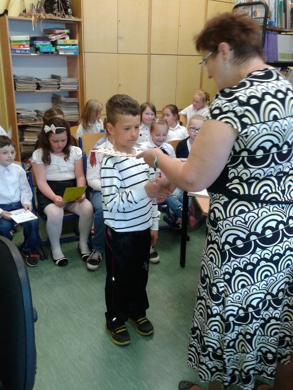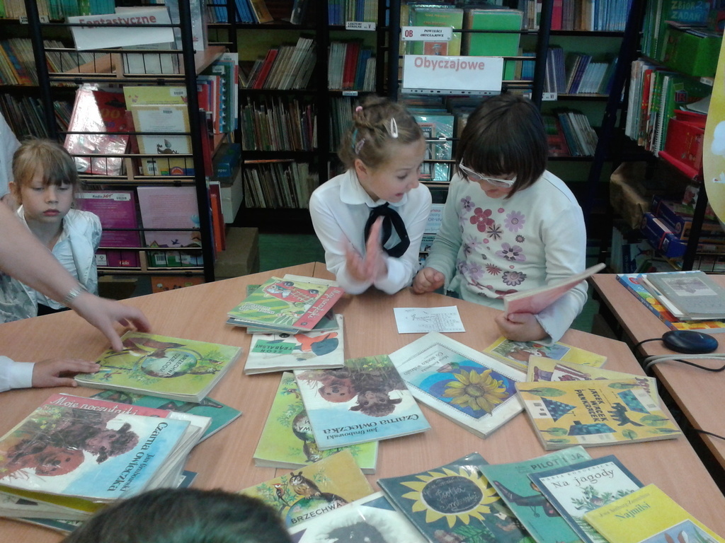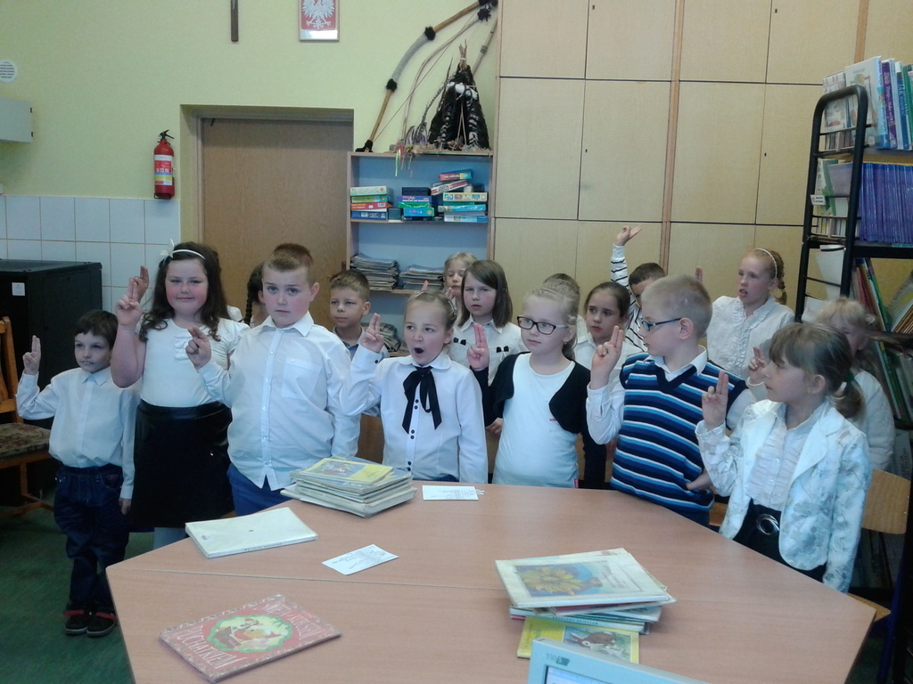 8 maja gośćmi biblioteki szkolnej byli pierwszoklasiści. Przybyli do tego przybytku wiedzy, by zostać pełnoprawnymi czytelnikami. Sprawnie rozwiązując krzyżówki i rebusy udowodnili, że znają już wszystkie litery, potrafią je zapisać, a nawet odczytać dłuższe wyrazy. Zostali więc uroczyście pasowani na czytelnika przez bibliotekarkę panią Jadwigę Rychlicką. Po zapoznaniu się z zasadami korzystania z biblioteki, każdy uczeń po raz pierwszy wypożyczył książkę.
