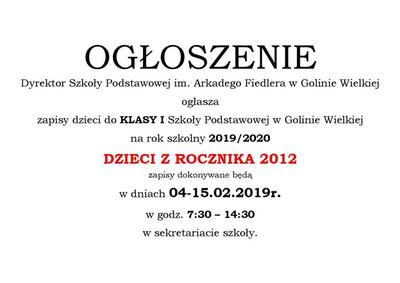 Zapisy dzieci do I klasy - rocznik 2012